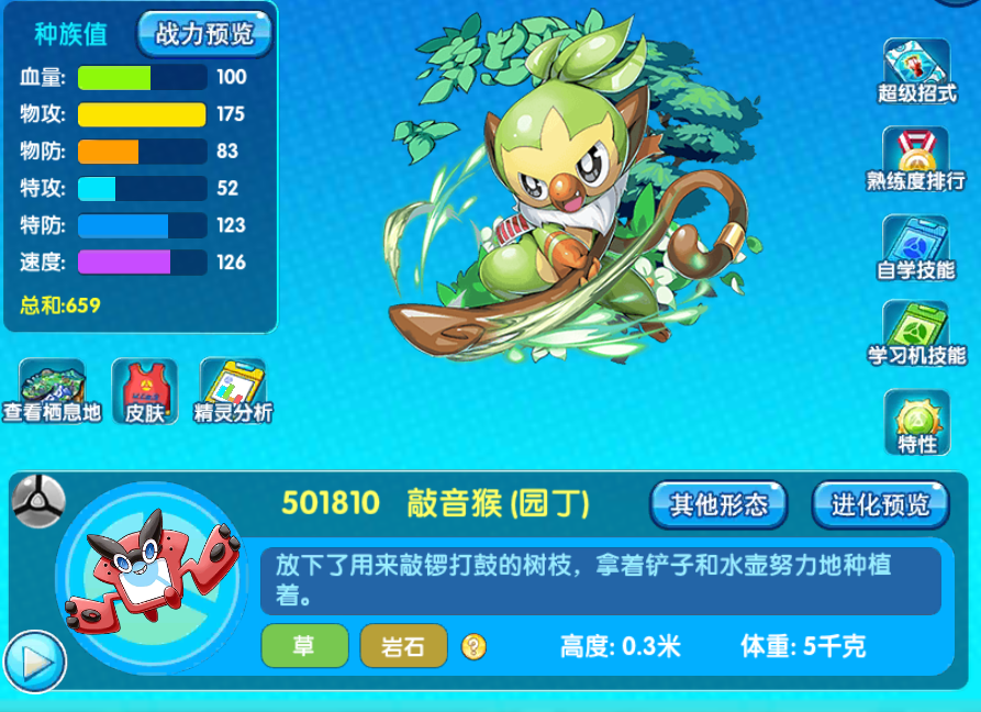 总结分析:敲音猴,属于高速度,高爆发的精灵,但是弱点也是比较明显的,比较害怕会防爆头盔的精灵,除非自身使用落拳就可以针对了,也可以在队伍方面选择会落拳的队友,想办法把对面的头盔宠物打掉,之后就可以进行输出了,但是一定要注意,如果对面使用克制你的精灵,强行来进行针对的话,那么千万别和对面硬碰硬,特别是物理输出手小金猪,同时也需要保护自身的剩饭或者是对焦镜片,如果没有保护好的话,那就很尴尬了,当然了,他强化其实也不怕对面的妙蛙花吼叫,因为会挑拨,所以说最好是先挑拨,然后再进行打就可以了,但是遇到天敌还是能躲就躲吧,要不然的话吃亏的还是自己