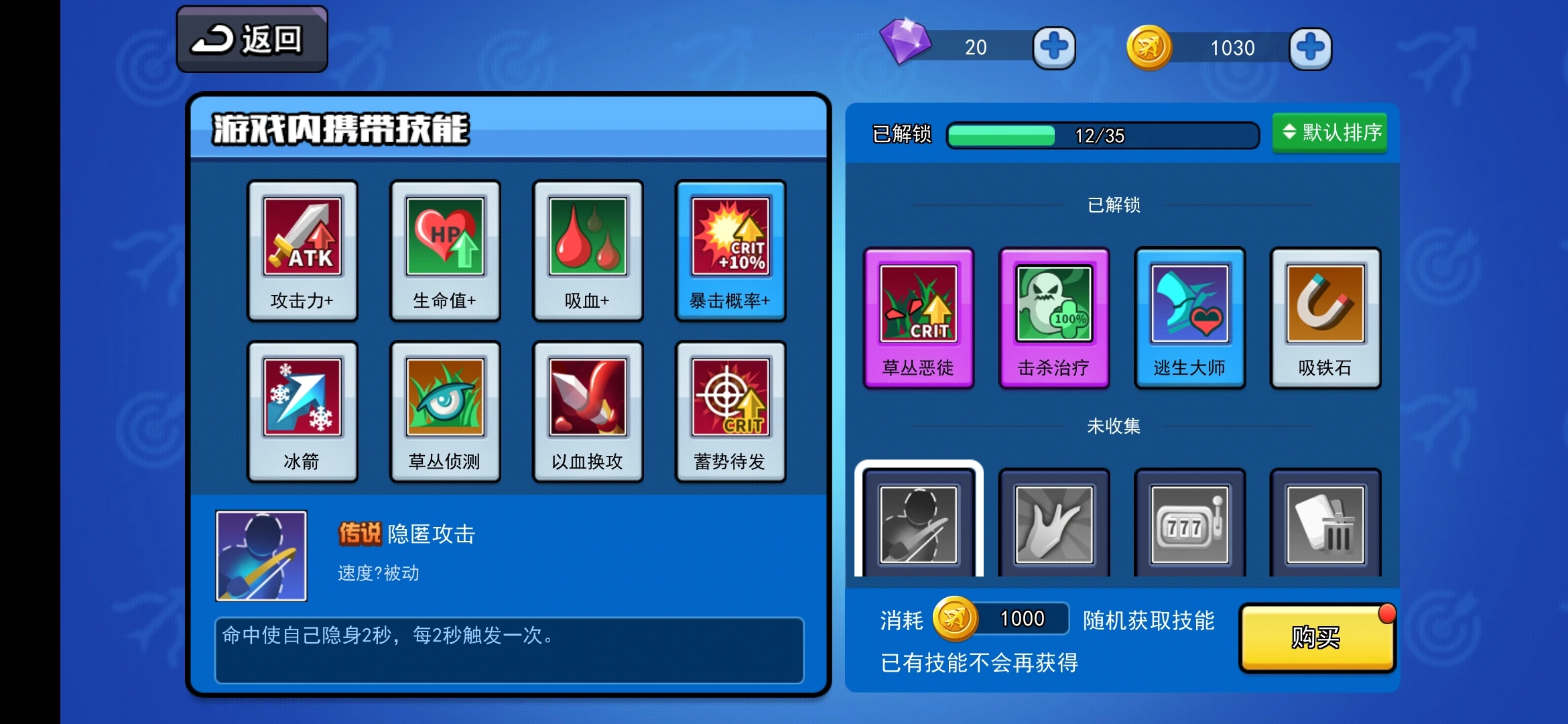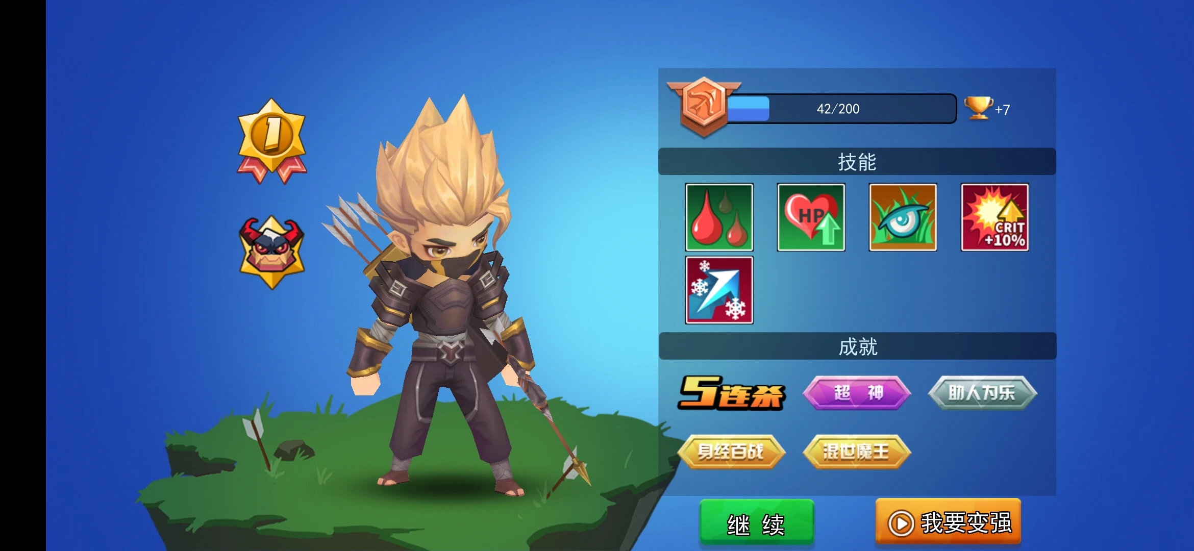 再说回到技能选择,这也是有讲究的,我们在游戏前就可选择八个技能携带,升级后会出现这八个中随机的三个,如此一来不确定性和随机性得以大大的增强,游戏体验也不同于闯关的弓箭手大作战。总之这是一款不错的射击游戏,如果你也有兴趣那一定是不容错过的!