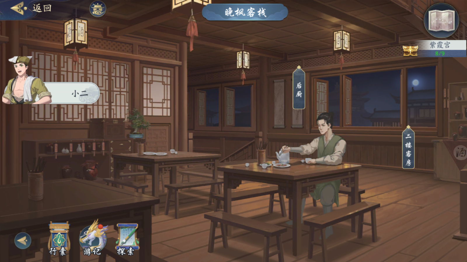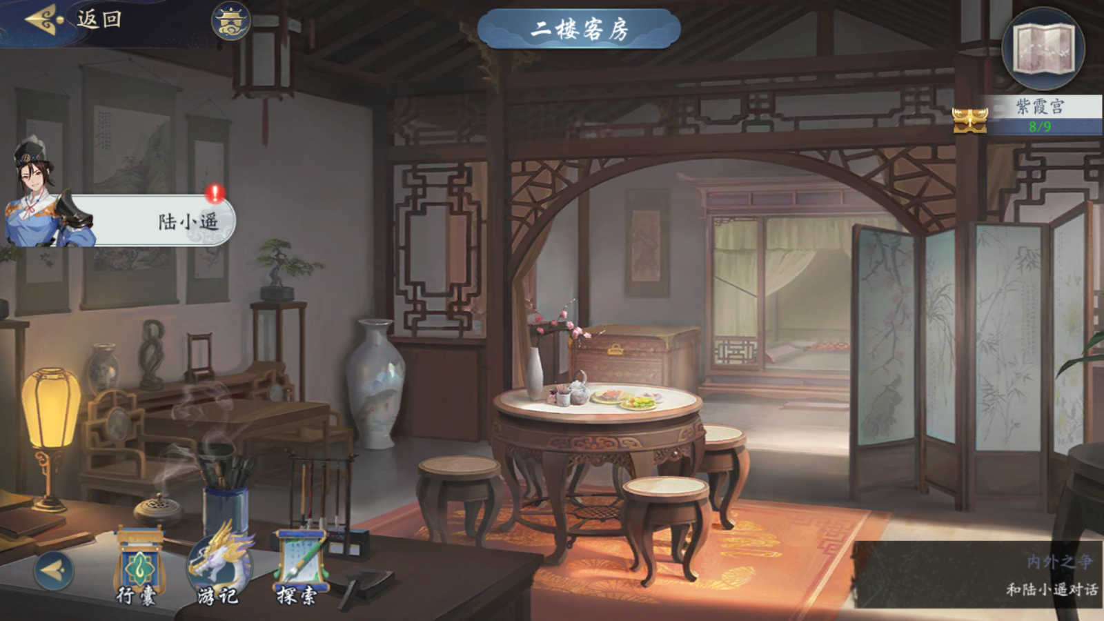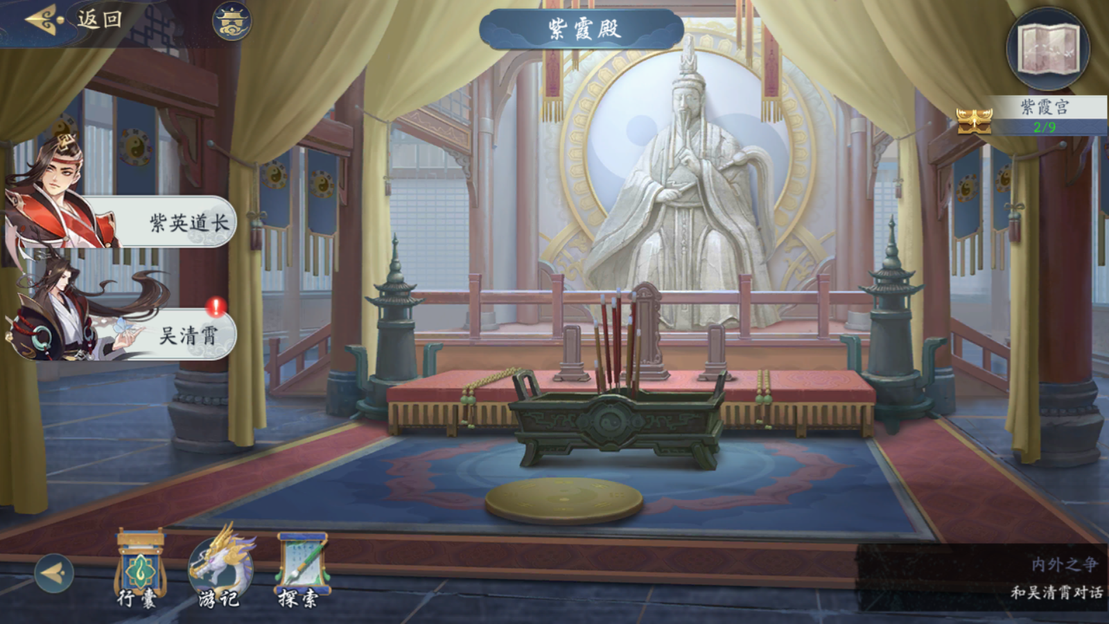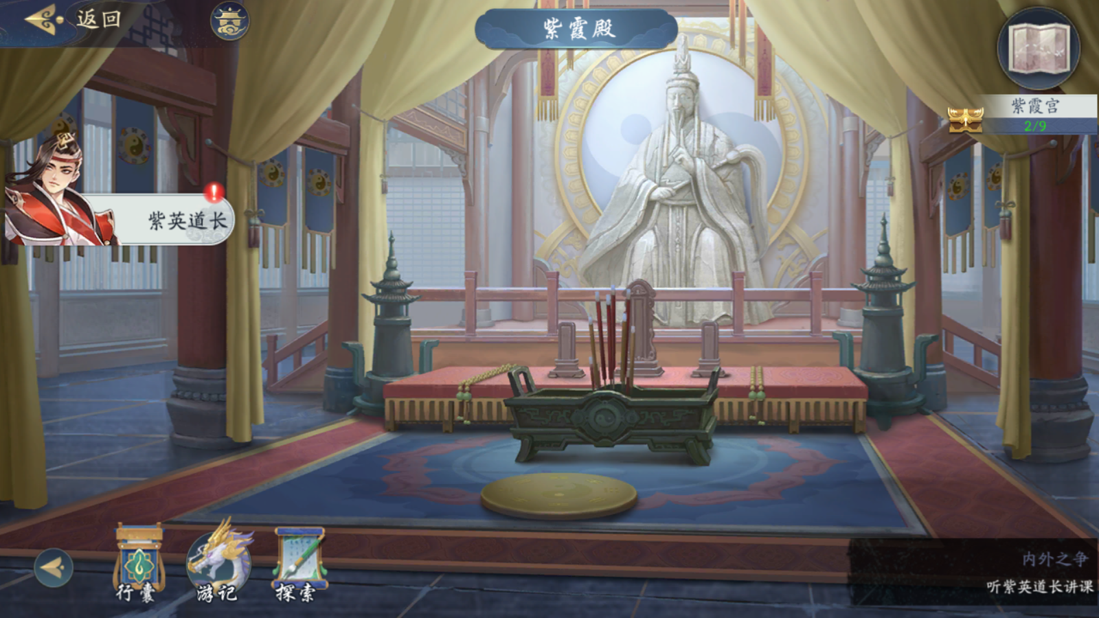 江湖攻略(二十九)紫霞宫諾米🐾发布于 2021-12-18关注本文转载于: 微博 武林闲侠攻略驿馆 详细攻略如下: 接取任务:内外之争 开启紫霞殿 点击道长 与吴清霄对话 去密室获得奖励 进行对决 点击闪光处-获得奖励 去晚枫客栈 和陆小遥对话 去后厨 翻找箱子