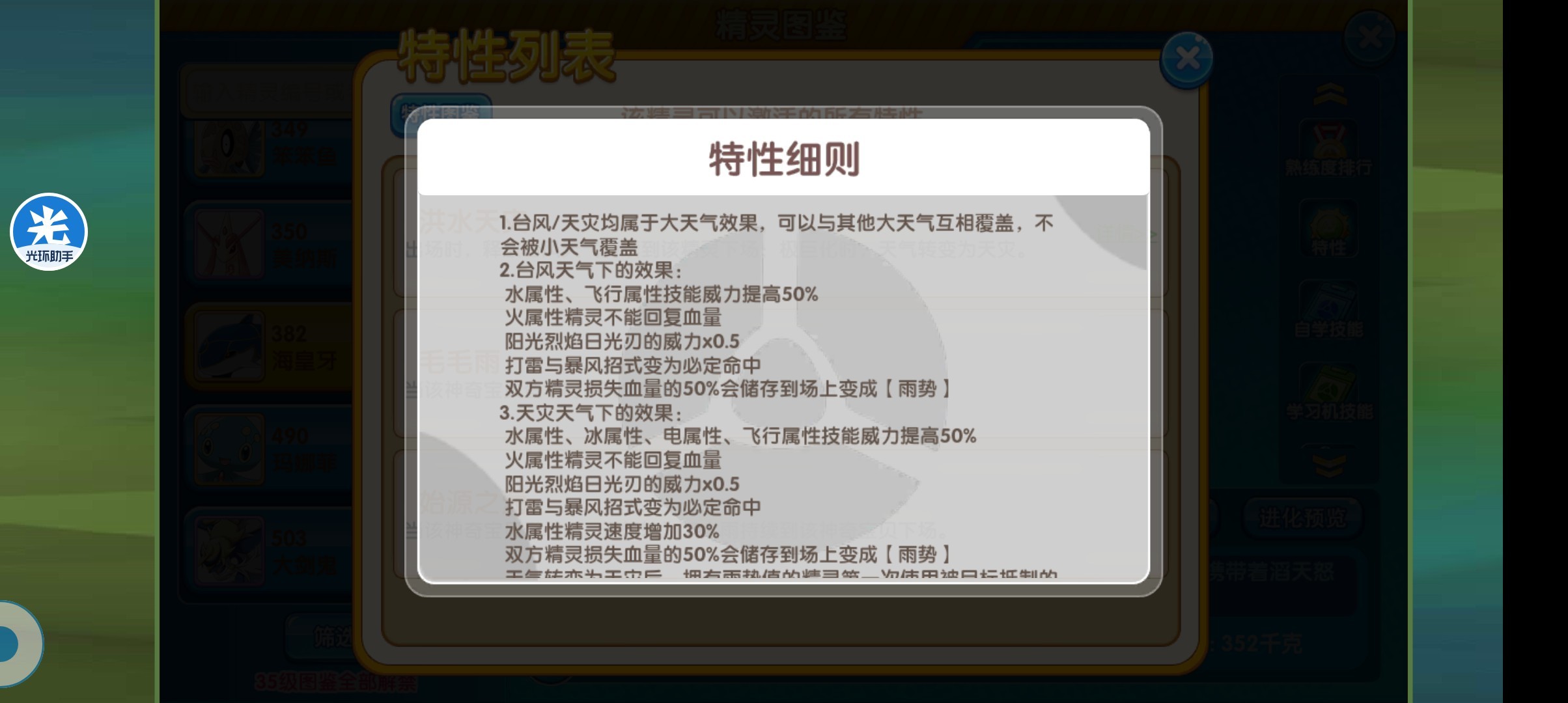 首先来讲,台风的第一个效果是可以让飞行属性增加50%的威力,水属性也可以增加,那么这样的话,就是相当于保留的始源之海的效果,同时,让飞行属性的招式相当于自己的本系输出