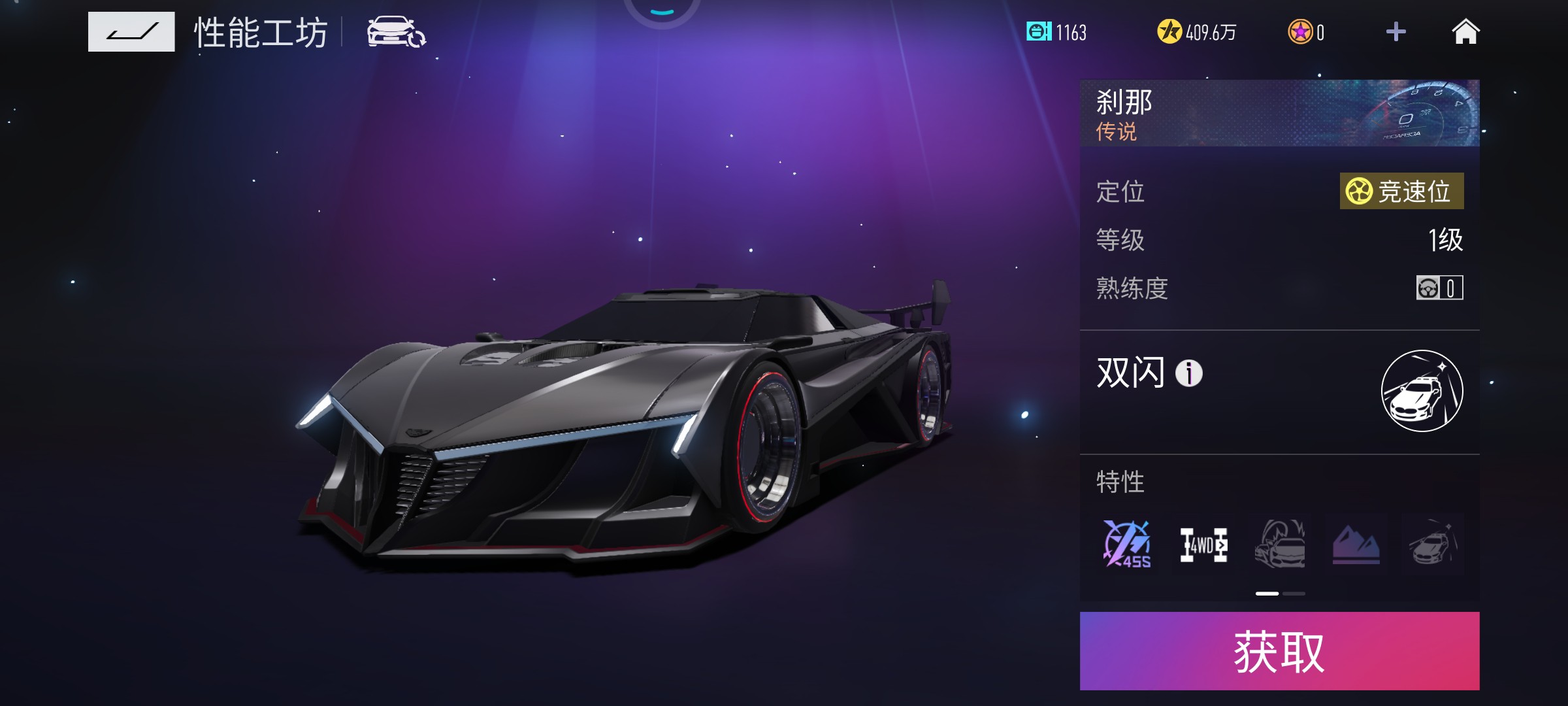 1、刹那是传说级别的竞速赛车,巨大的尾翼带给它强大的稳定性;
