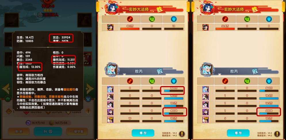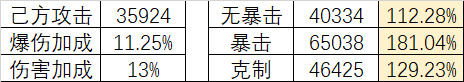 以太乙真人为例,计算克制、暴击、伤害加成效果,太乙真人基础攻击为35924,爆伤加成11.25%,伤害加成13%