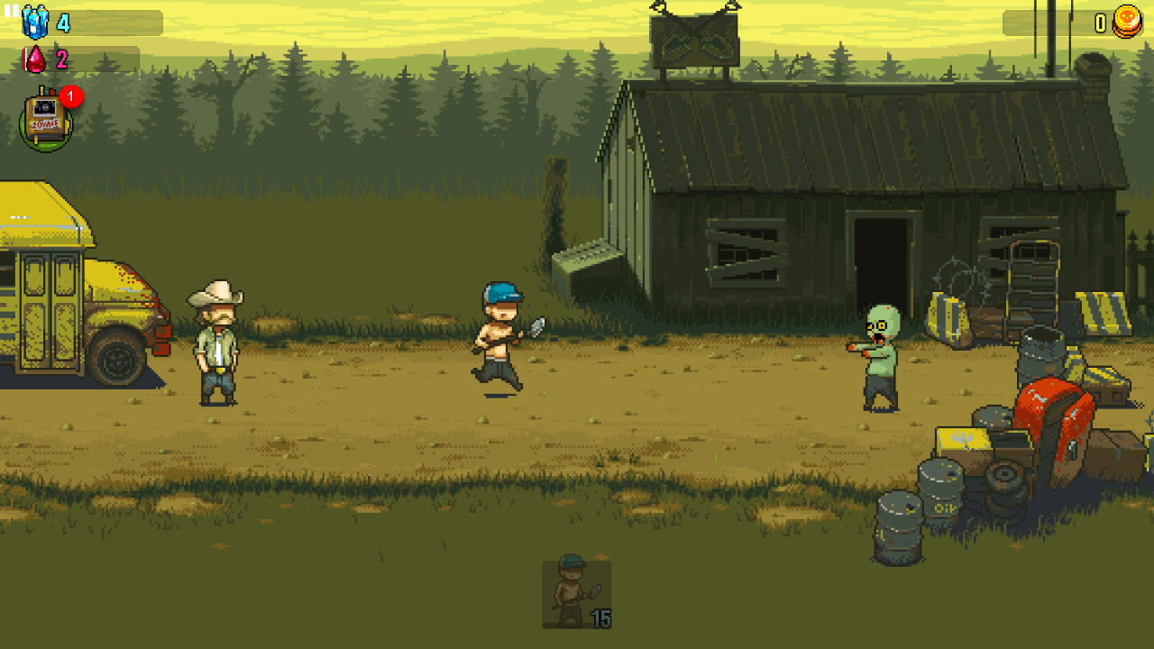 撇开其他不谈,先来看看游戏的画面。游戏采用了现在少见却十分经典的像素风,充满了上世纪九十年代的感觉,让人仿佛穿越曾经,手持红白机一般。虽然是简朴的像素风格,却并没有给人以生硬的感觉,游戏中的丧尸步履蹒跚,唾液满地,即使时二位平面图也将丧失的可怕摸样刻画得淋漓尽致,给以玩家绝妙的感官体的同时,也让玩家打开游戏的第一印象大大提高,妙哉妙哉。