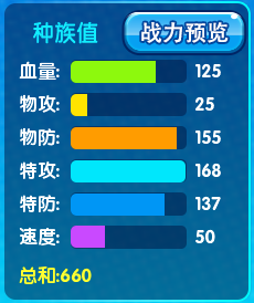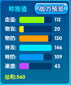 有效种族值相当不错,血量、双防和特攻都偏中上,虽然速度很低,但并不是它的刚需。