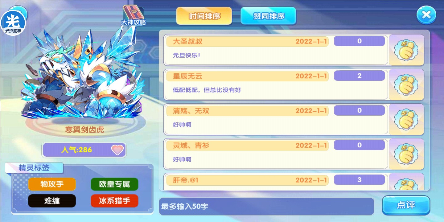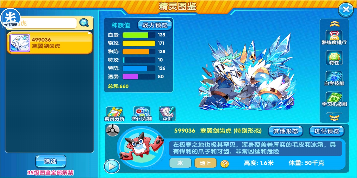 新年签到宠~寒翼剑齿虎玉筠发布于 2022-01-01关注今天早上登录一看,多了个新的签到精灵。然后去看看图鉴吧。 速度确实不太给力,但是毕竟不要钱,还是新年第一只宠物。我看到这个剑齿虎的评论里有说是低配萨戮德的,那就来简单对比一下。 。