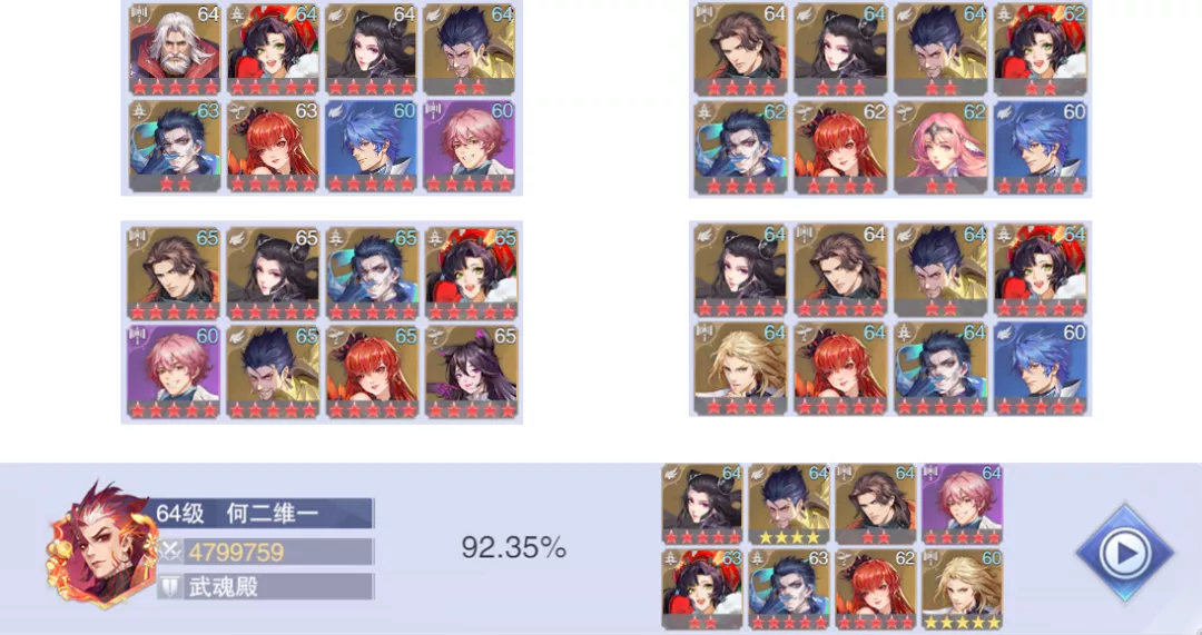 反正维一这个阵容的总战力大概就不到500万,早上打到了我们区第8,目前截止下午4点是排名第11,所以大家可以参考下维一的这个练度和所用的阵容,这里我选择上戴沐白的原因是我的比比东星级有点不太够。
