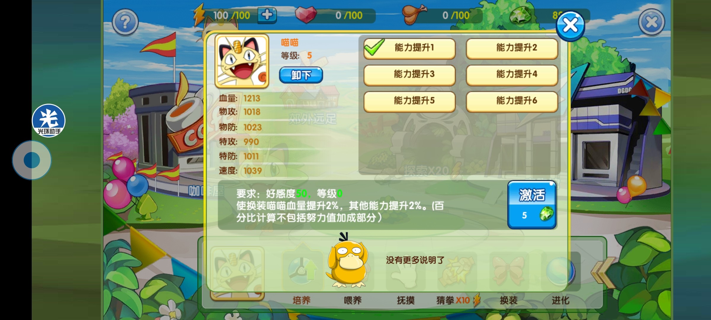 喂养:提升亲密度,还有饱腹度以及体力,若长时间饱腹度较低亲密度会减少哦