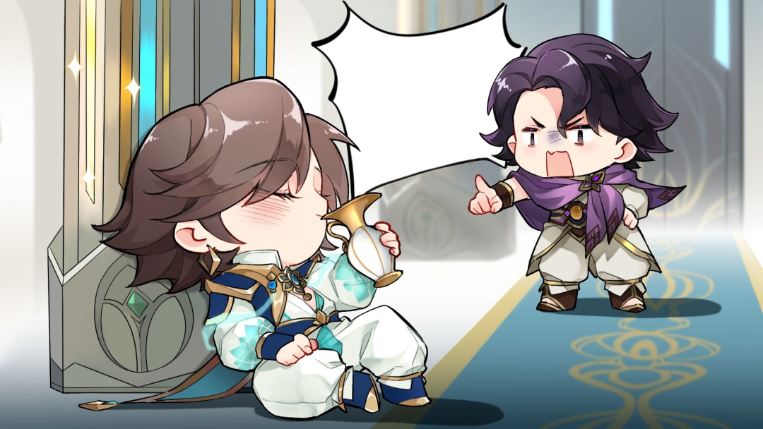 嘿嘿,《玉城之子》CG的内容可需要大家细细品味哦~看完了CG正片,想必小伙伴们一定还对暃和晟兄弟俩的羁绊故事印象深刻,一张可爱的“斗嘴”小插画奉上~