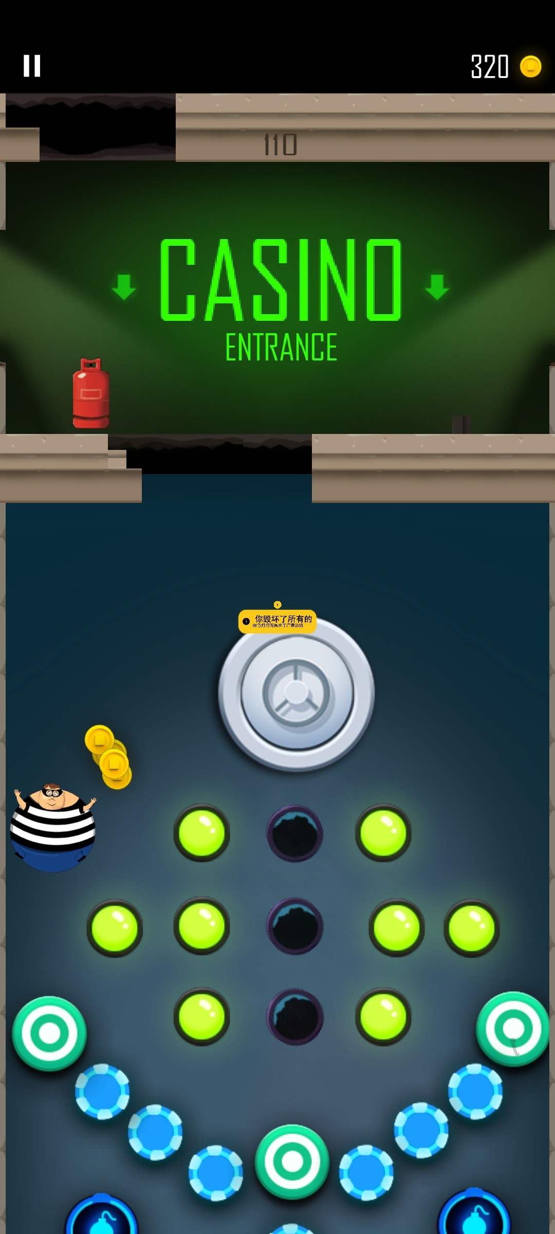 3.楼层越高出现的道具越多,会出现地雷等道具,地雷甚至可以破坏导弹,自然也可以带来额外的金币;