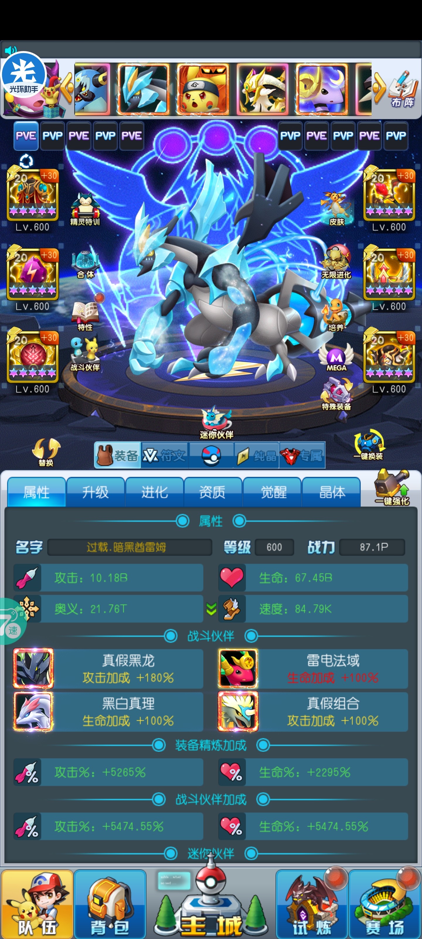 这一套主要是法穿,然后羁绊加成用了幽灵,龙,超能,格斗。