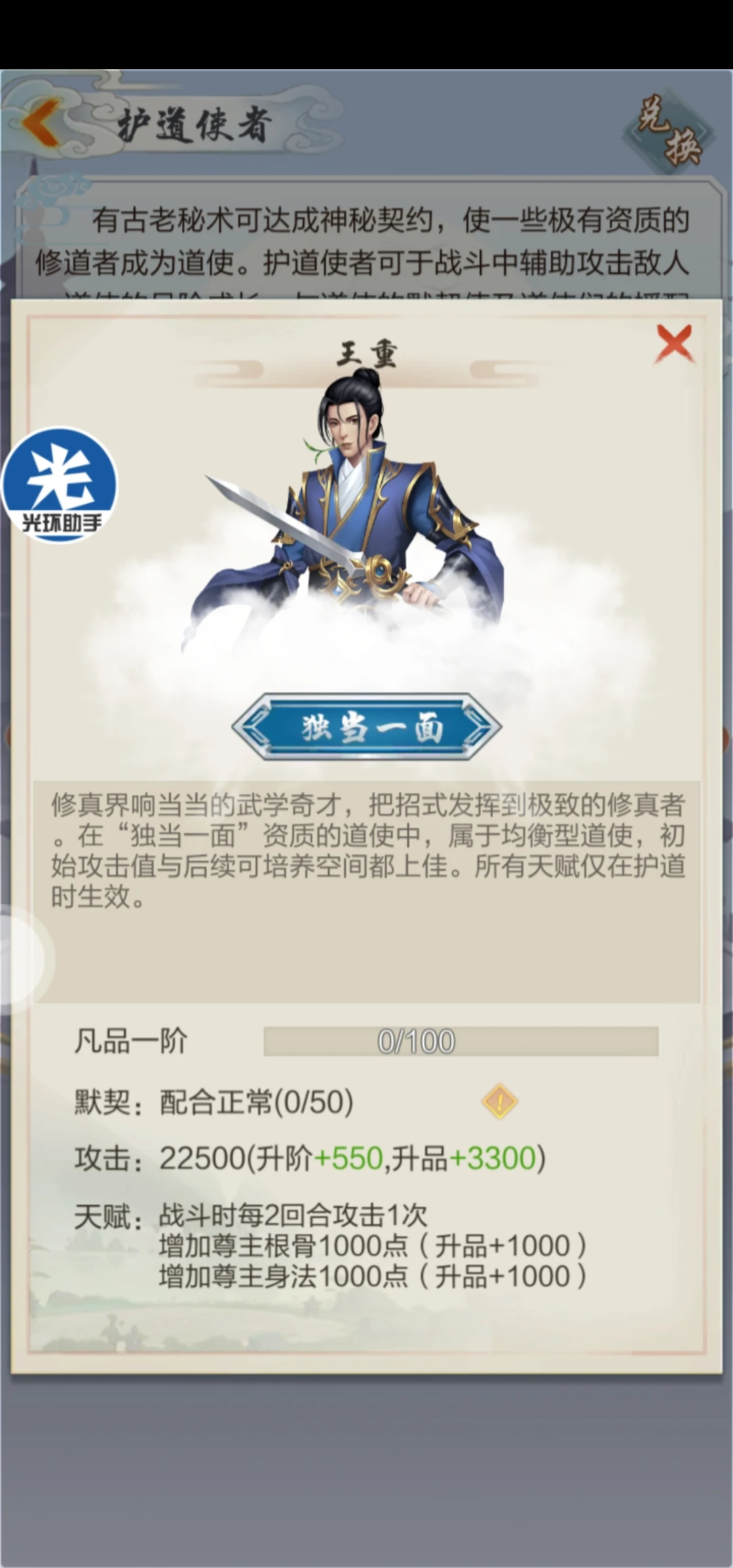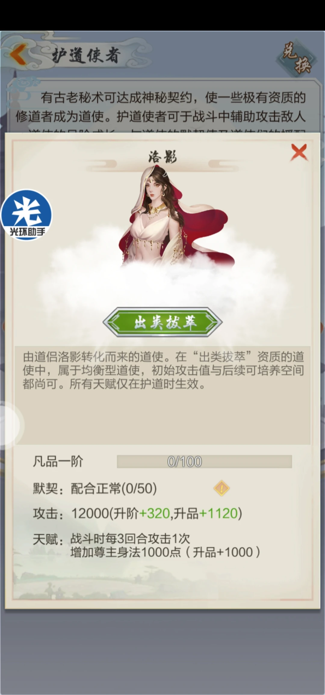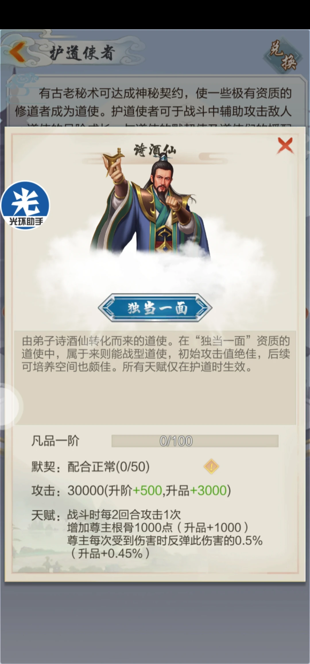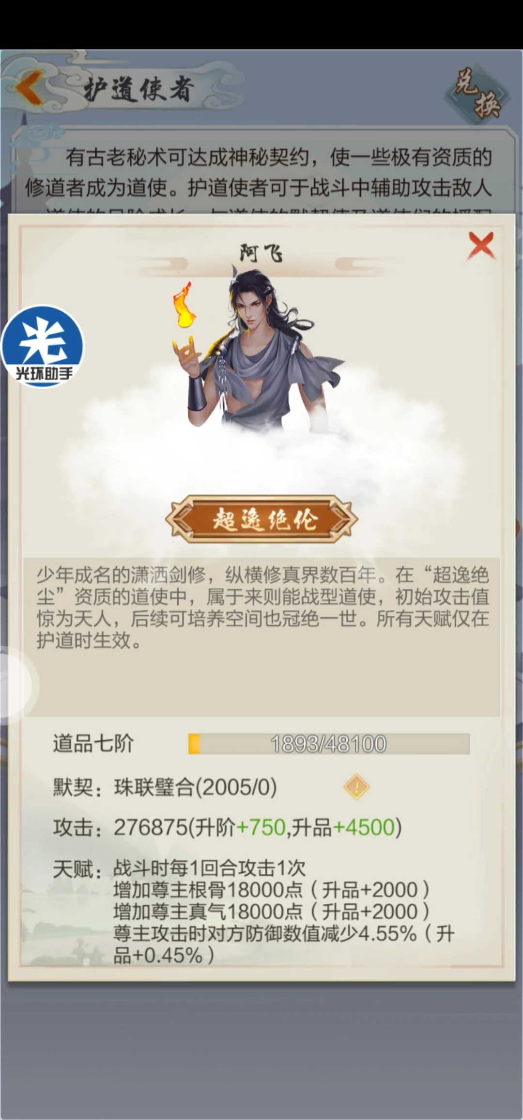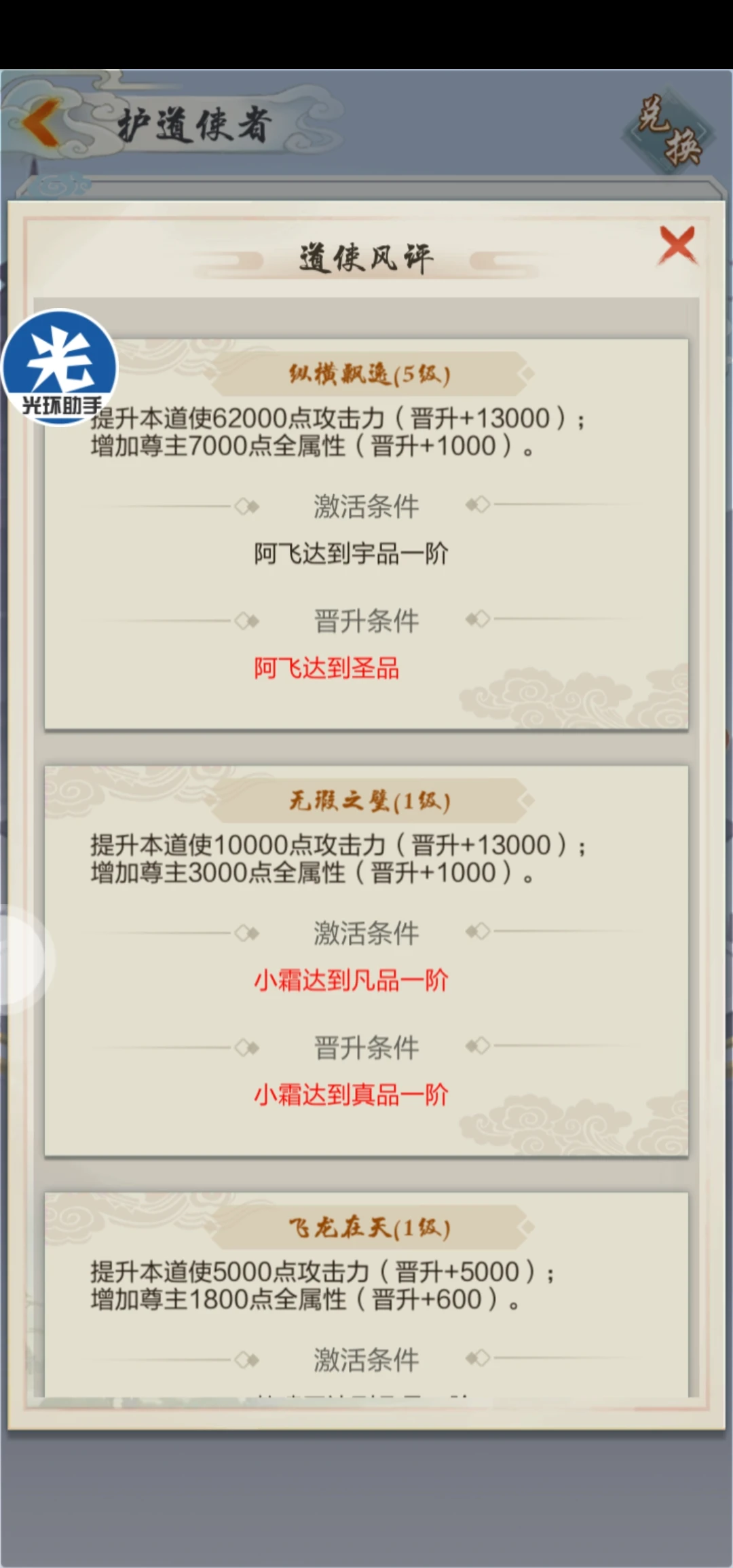 道使风评根据道使天赋与品级的提升增加道使一定的攻击力与尊主自身的全属性。