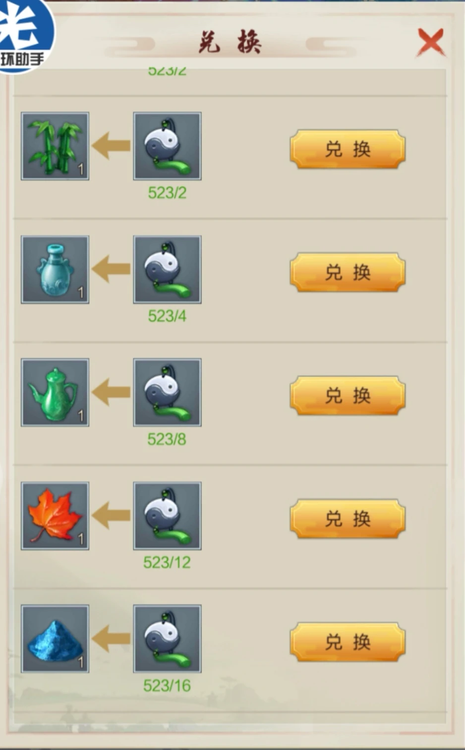 升品材料:升品材料共5种,分别是:空灵竹、青玄露、石髓酒、赤叶枫与三生沙