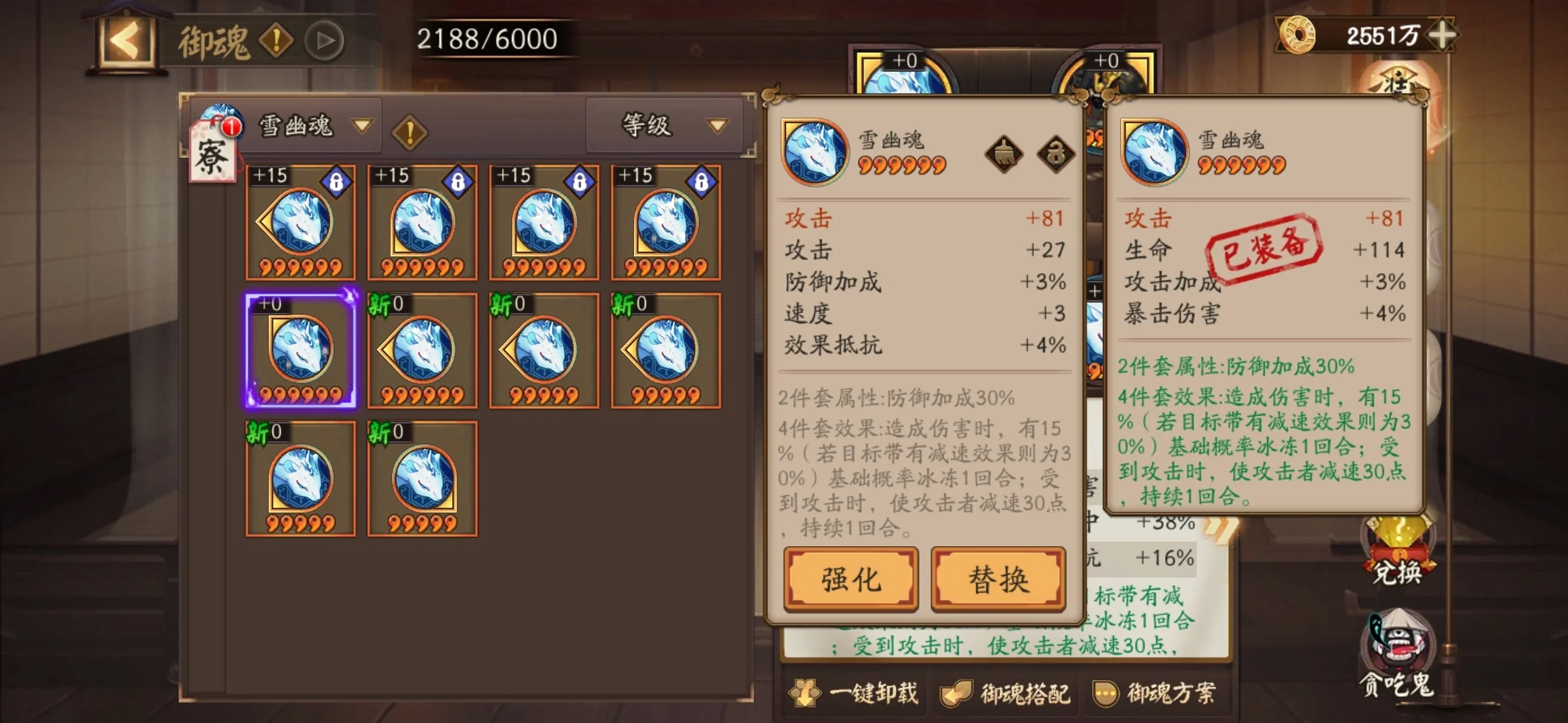 由此可见,御魂雪幽魂属于一个〖控制系御魂〗硬控冰冻,加上软控的减速,攻击减速提升命中这个被动较果更是把雪幽魂推上了控制系第一御魂。