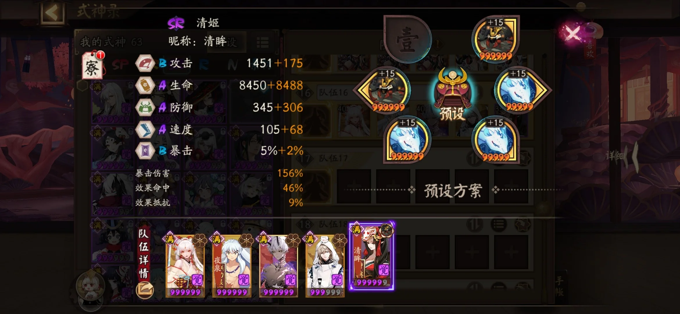 清姬嘛~不是于秀丽,是sr那个,拥有强大的毒伤,脆防,间接伤害,是公认的pve雪幽魂+土蜘蛛契合式神。