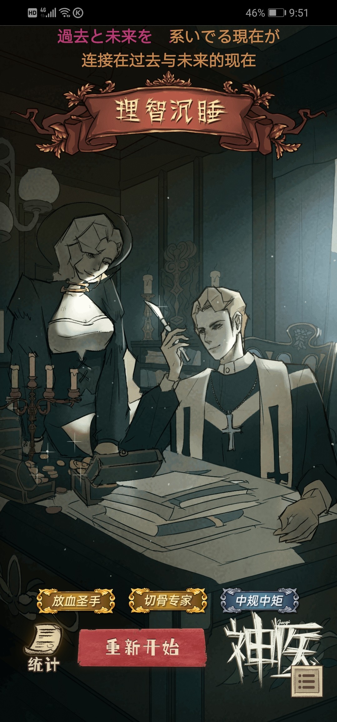 一共有四个结局哦,另外两个分别是在老师被判绞刑的时候,医死一个人,还有就是所有限时的任务都没完成(就是几轮到几级的那些)