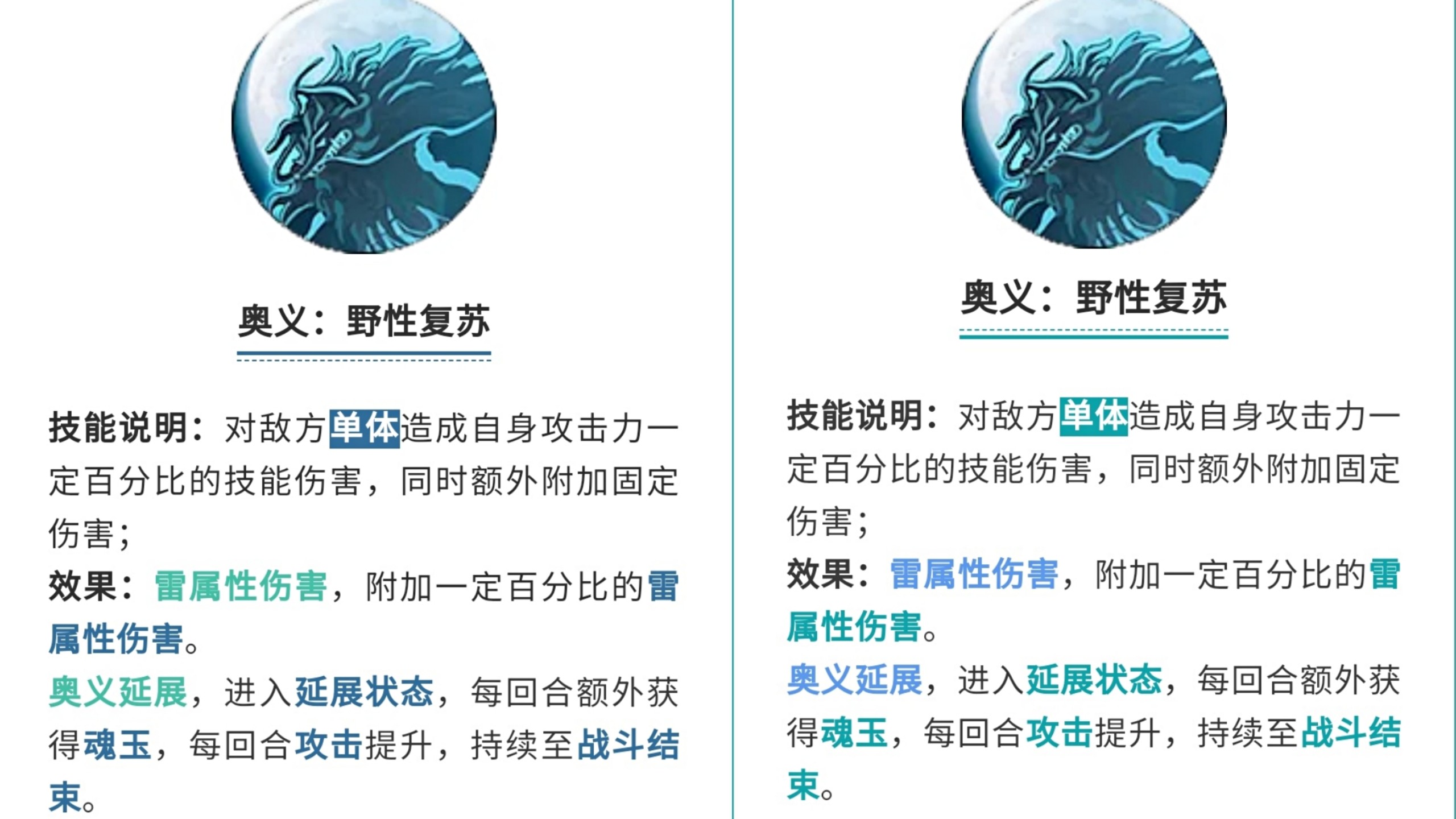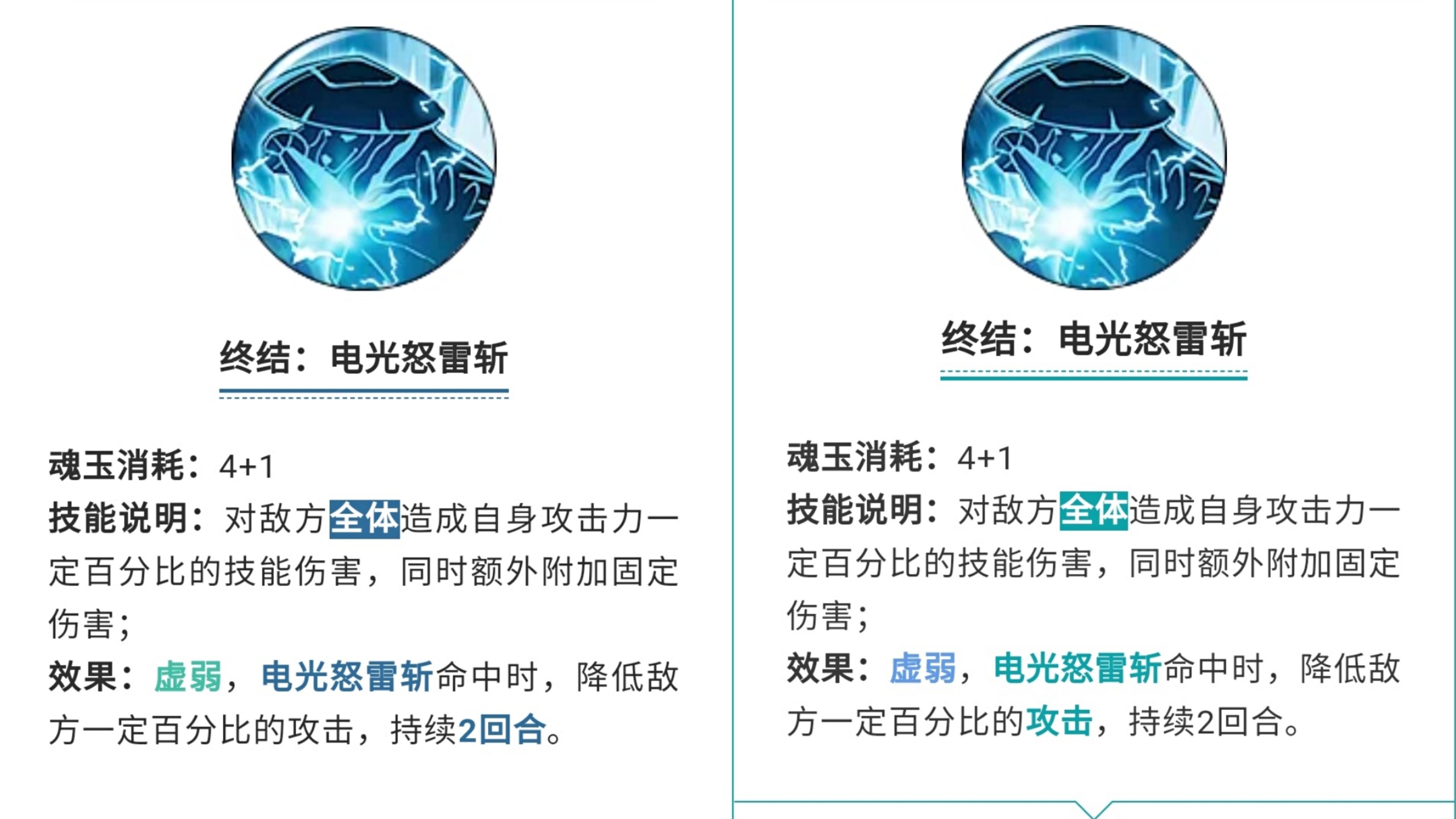 单体奥义,雷属性伤害,进入奥义延展每回合获得魂玉攻击也提升,持续到战斗结束。也就是说进入了奥义延展除非用终结退出,不然是不会退出延展的。(新区老区技能一致)