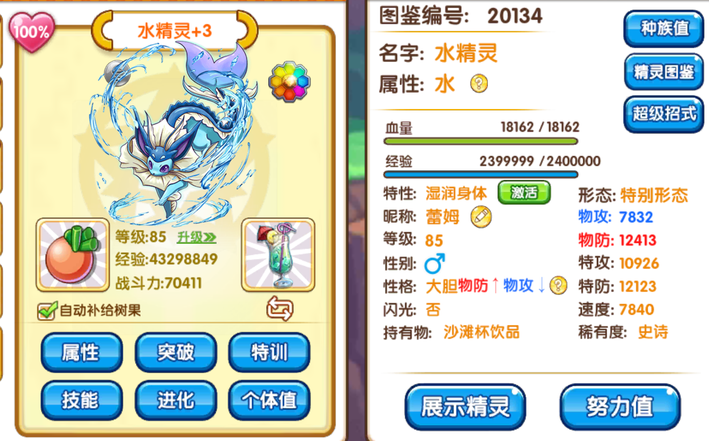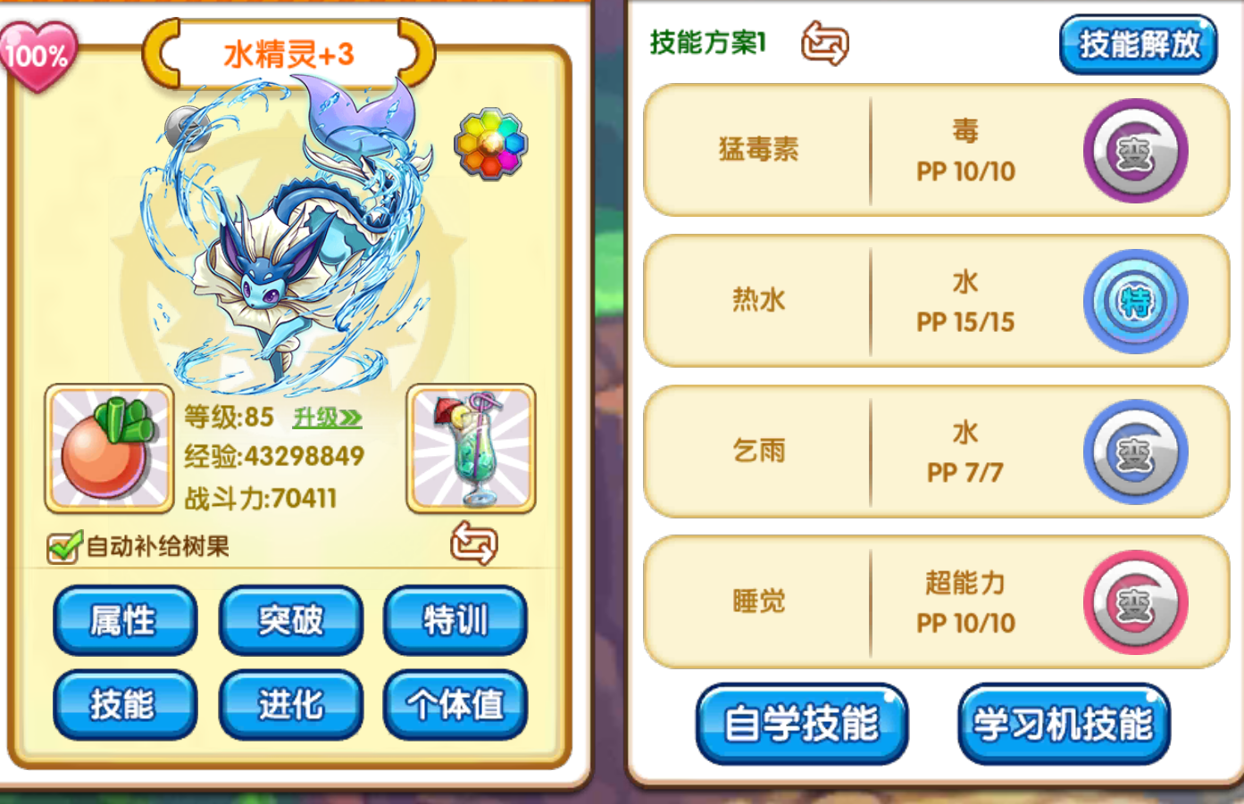 水精灵能猛毒,灼伤(对付物攻手,直接热水怼上去,对面好不容易剑舞几下,白费了)