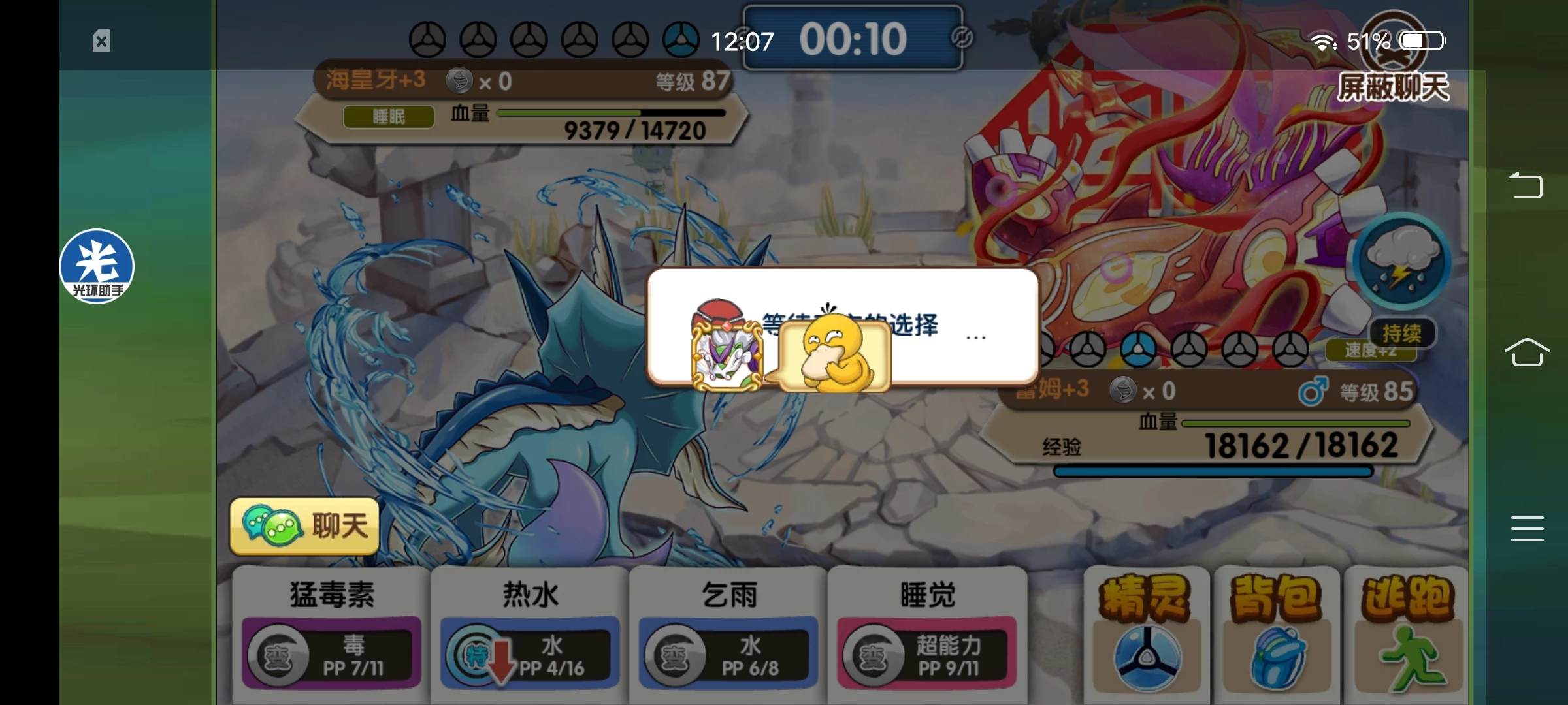 我这种是准备直接开顺风让噩梦战死(可以多杀几只宠),接着玩雨天套路。这样难度就大大减低了,因为水精灵的天敌太多,噩梦刚好能克制,我是建议上这个先处理好天敌再玩雨天套路,不然容易被对面耍。