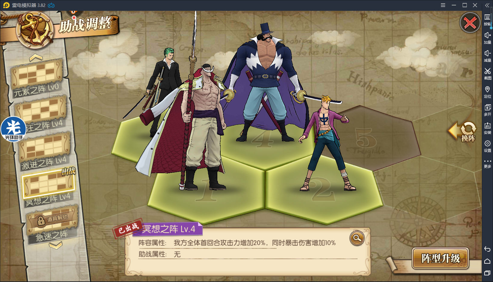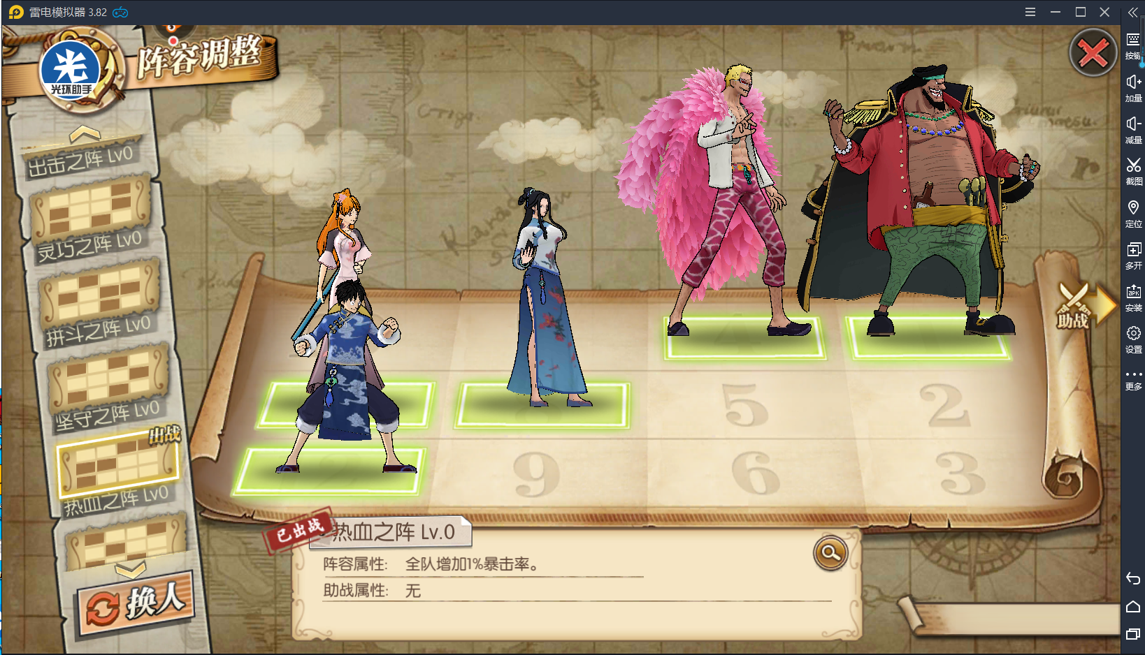 我方全体首回合攻击力增加20%,暴击伤害增加10%非常适合索隆路飞白胡子明哥娜美一回合爆发