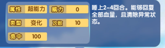 睡觉状态拥有两种发动效果,第一种主动发动,第二种被动发动,主动发动可以使用睡觉技能,被动发动,是让对面让你陷入睡眠状态可以陷入该状态的技能有:蘑菇孢子、睡眠粉、唱歌、催眠术、睡觉(自身使用)