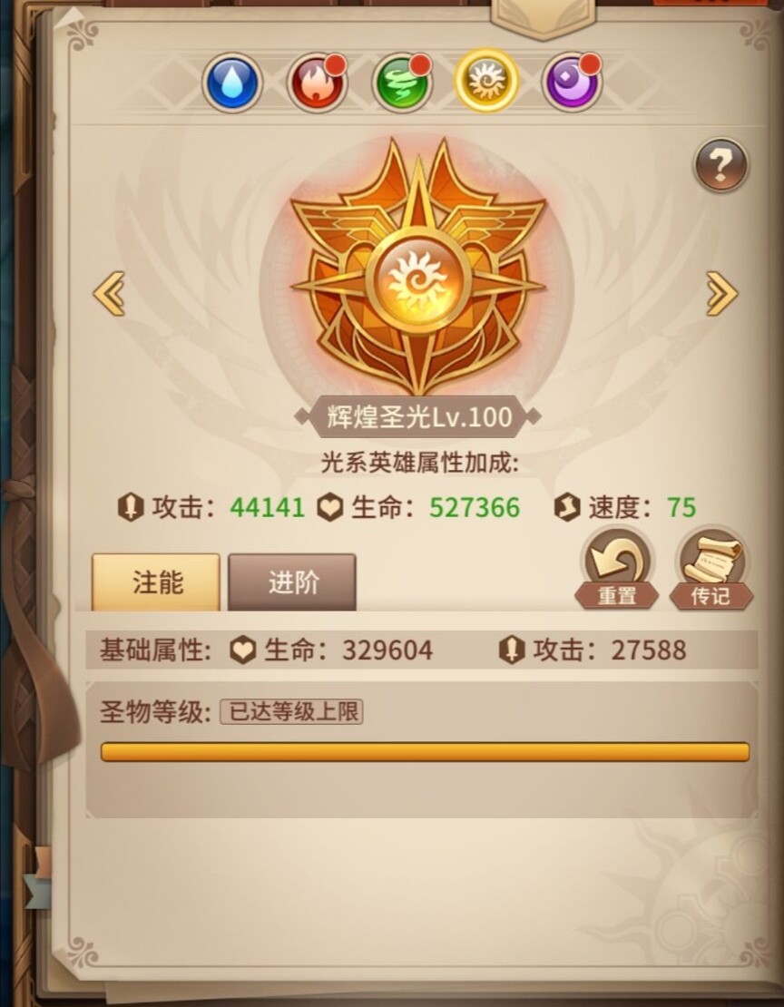 1.如同光暗英雄和自然英雄成长属性有差距,自然圣物和光暗圣物成长属性同样有差距,两者满级属性也会有差距,所以主玩光暗的话异能英雄建议链接光暗英雄。文章末尾附五系圣物满级属性图以及满级所需材料图