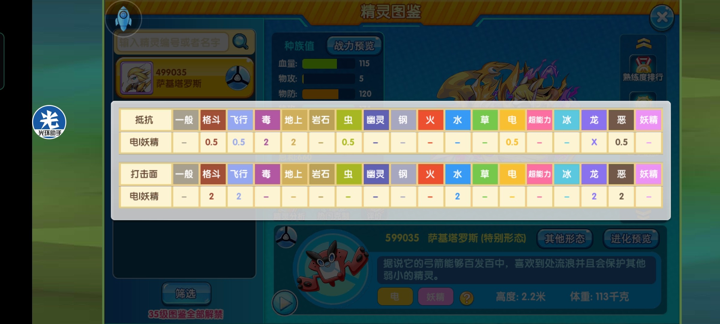 属性上可以看到,电妖属性的完美配比,只弱地,毒系方面基本来说可以直接忽略掉,针对主流达加尔电鸟主要输出技能来看,电,飞行,格斗,恶,都能轻松对刚,可以说在属性方面占尽优势。