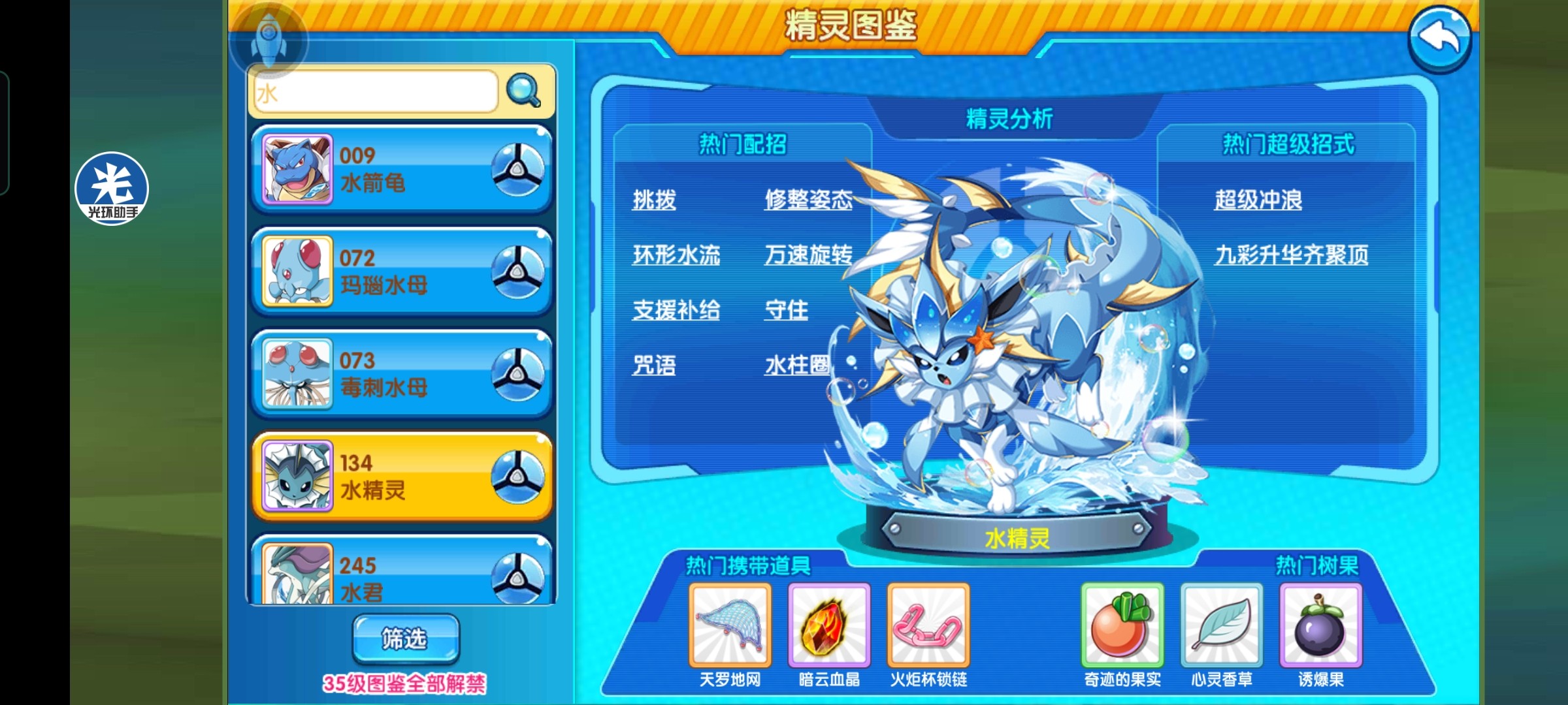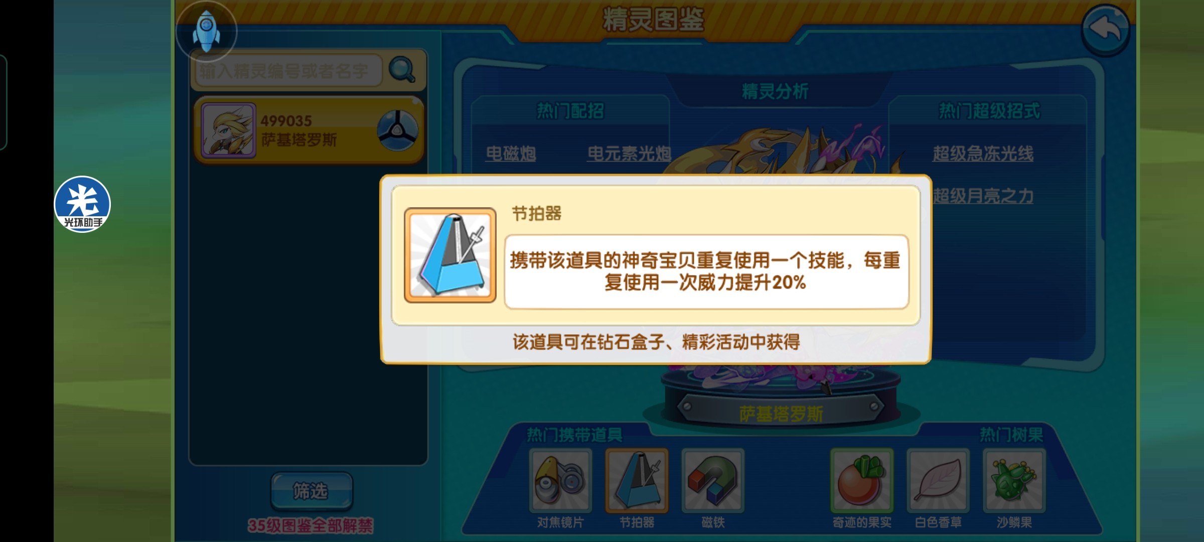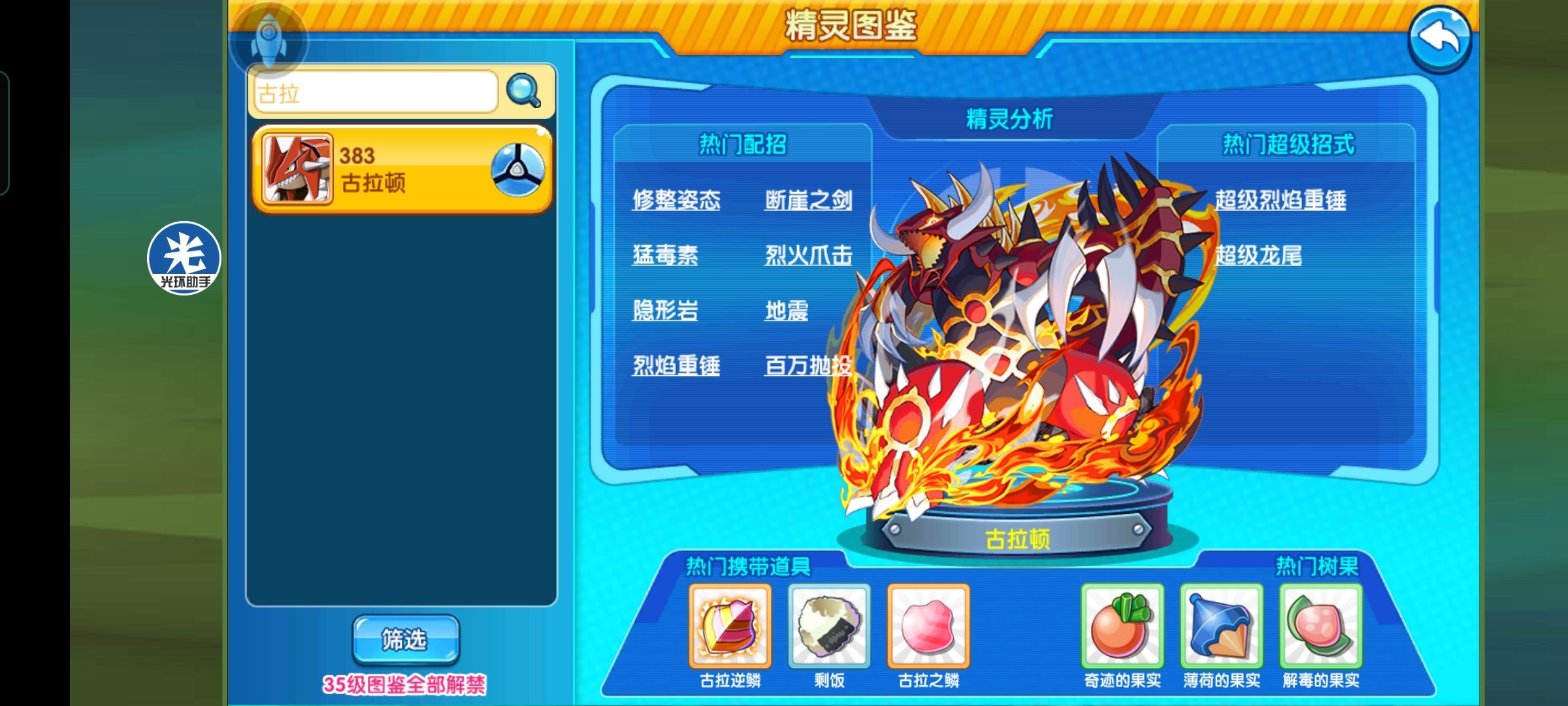 万能选择奇迹果,喜欢极致一点儿的训练师可以带加速果子,奢侈的训练师一定要带抗地果