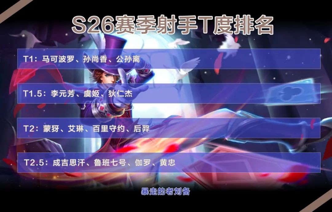 此次S26新赛季也有段时间了,由于正式服出现有个别英雄发育及转线能力很快,导致了射手位发育空间不断被压缩,今天给小伙伴带来一期射手T度排行,此版本还是会出现有很多老面孔,相信大家已经不再陌生。好了,下面我们一起来看一看到底谁还能坚持在最强位置上。