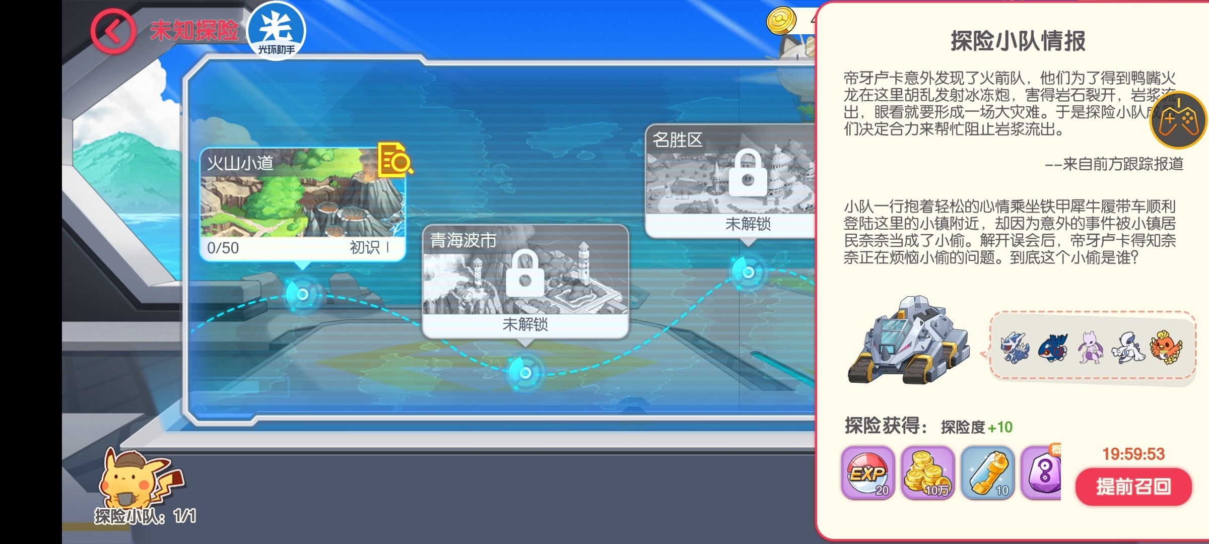 另外,探险一旦开始,是不可以花费钻石提前结束的! 虽然有个召回,但是召回了啥也没有(可能是我才刚开始一会儿就召回的原因吧)