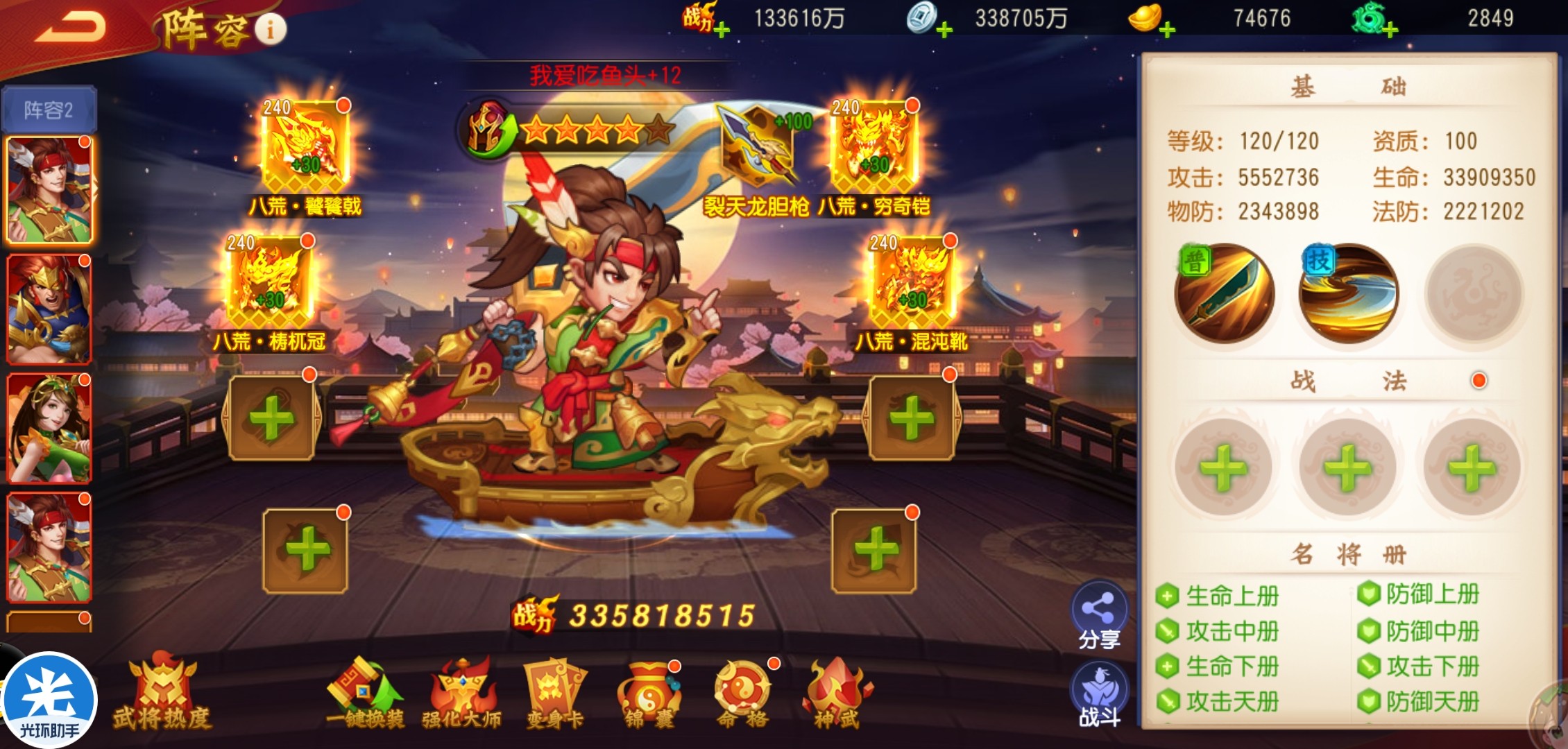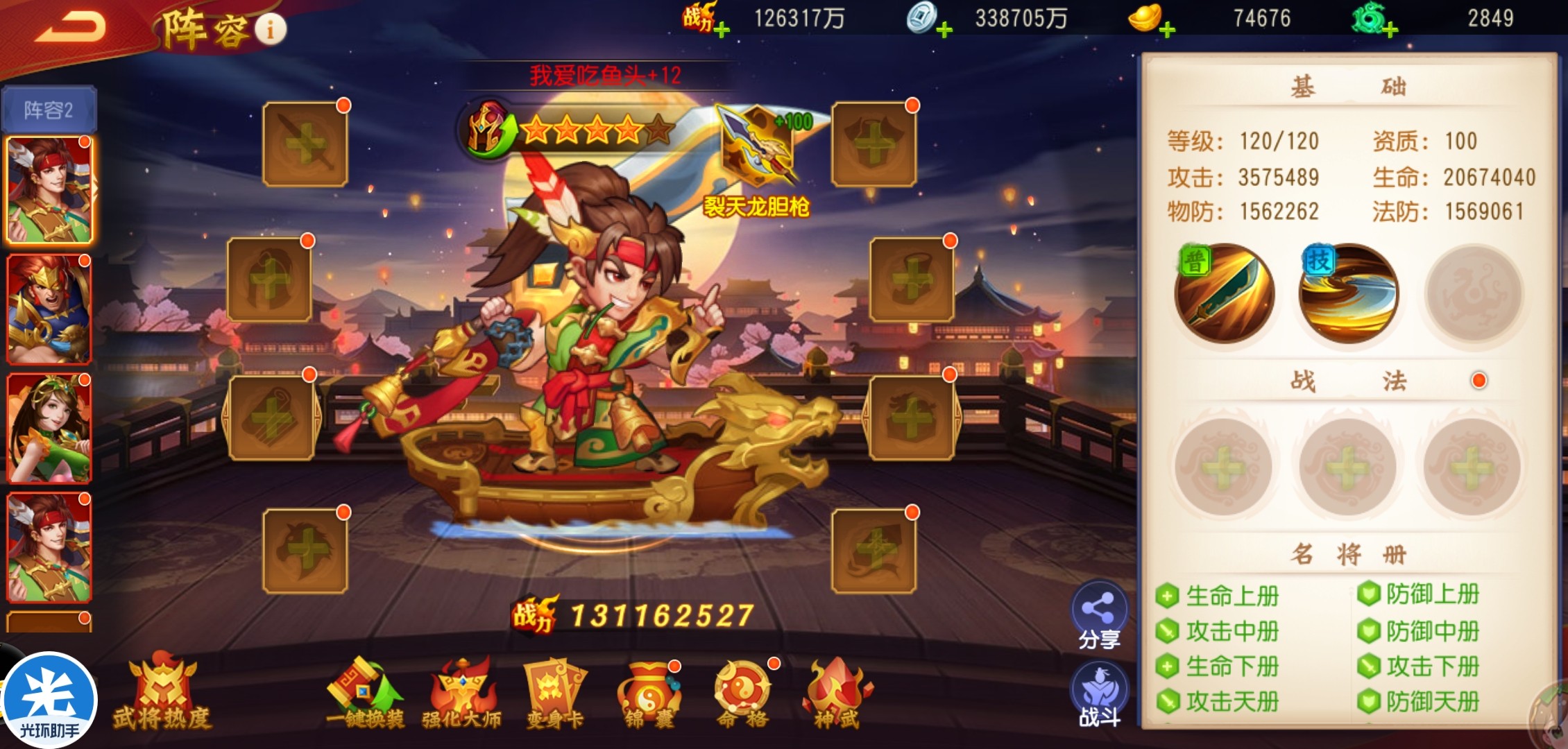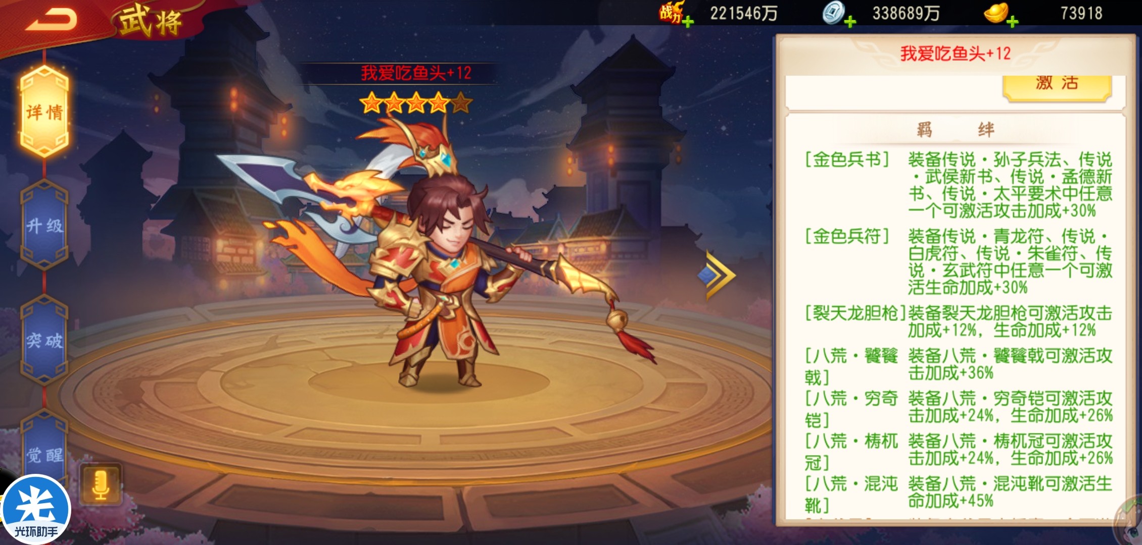 而上阵武将随着各种培养,比如界限,属性是可以进一步的提升。