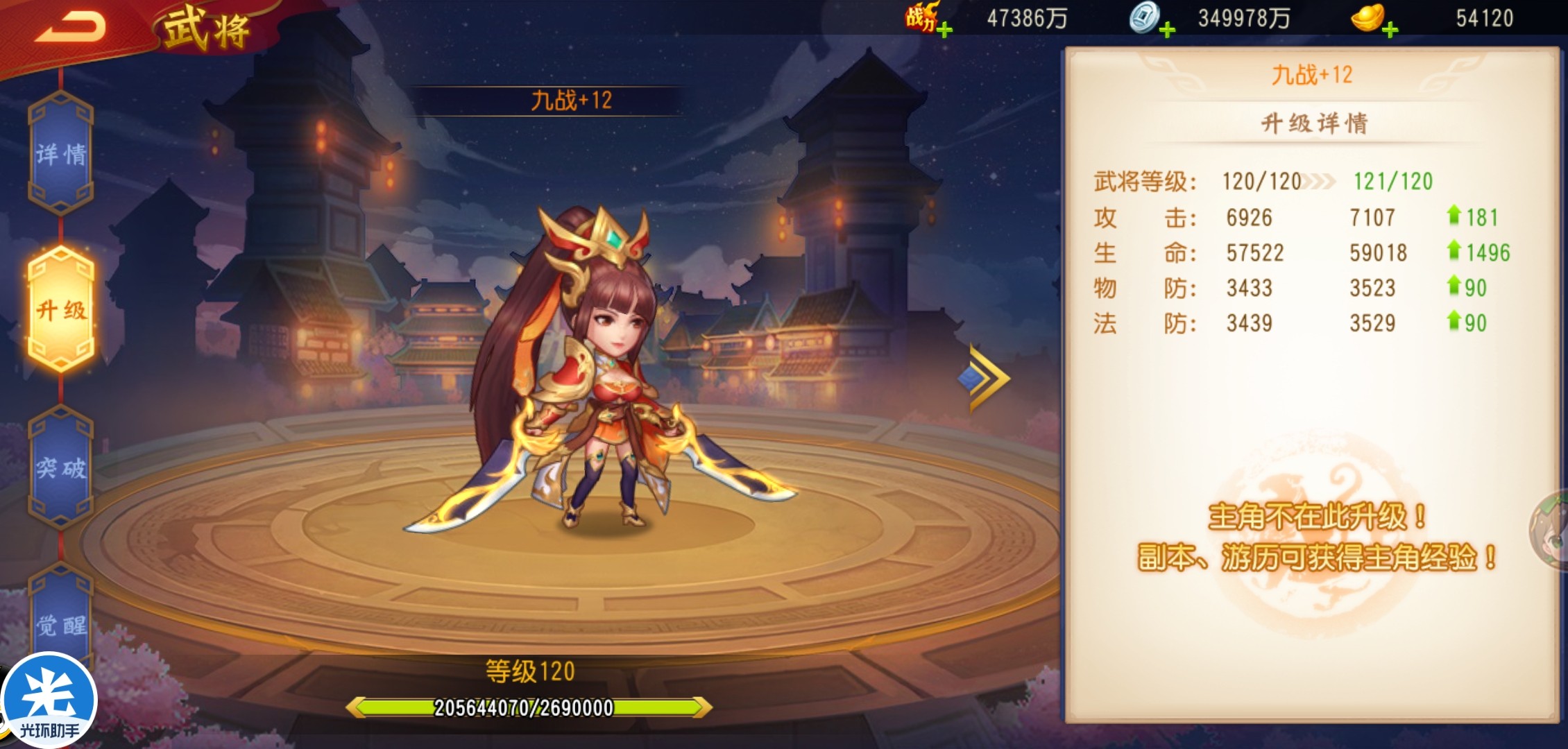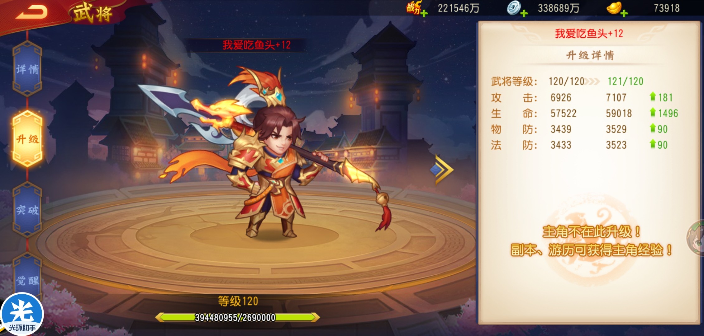 只是在前期时,主角的培养上会比上阵武将快得多,比如主角的突破、觉醒不需要消耗武将资源,而上阵武将的培养是需要大量消耗同武将资源的。