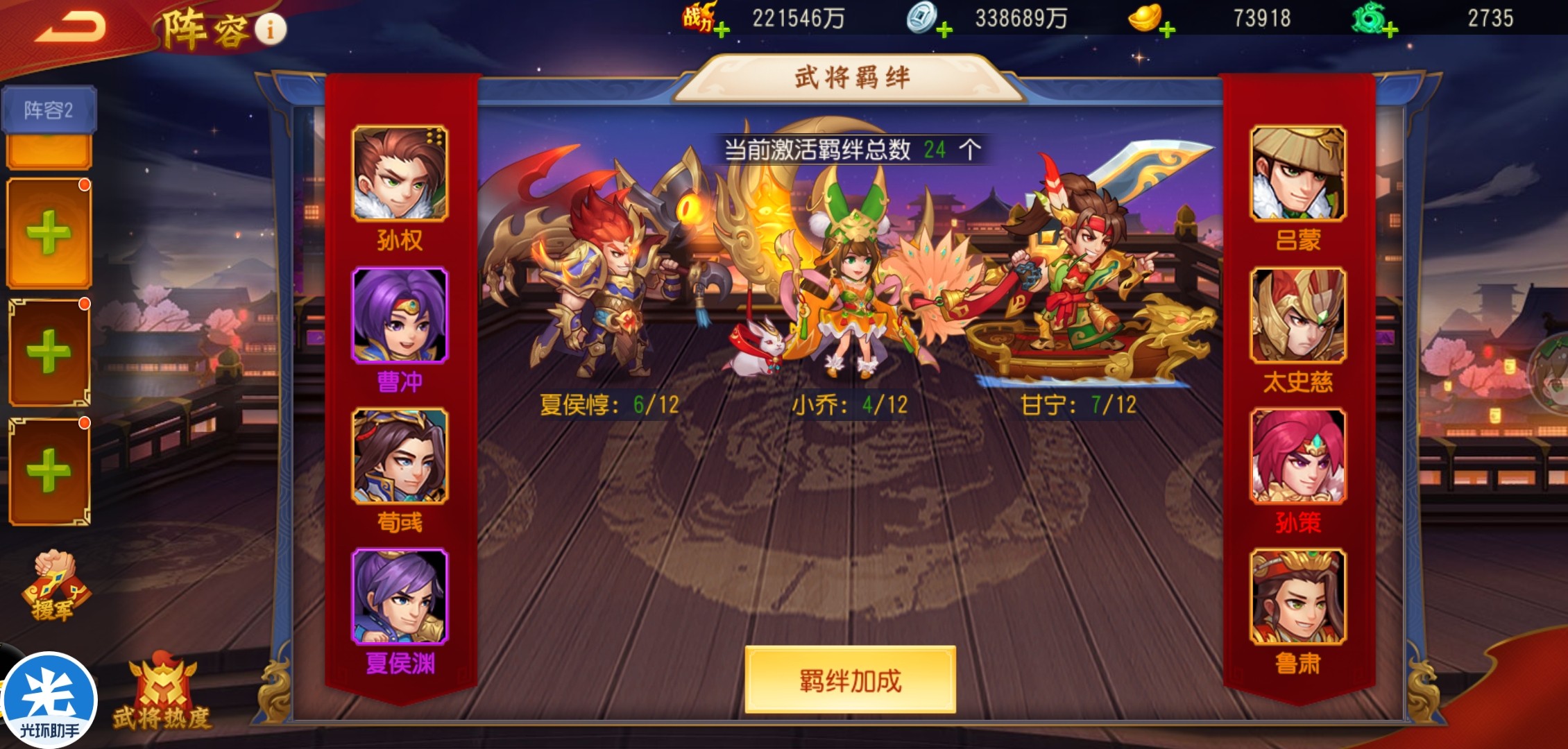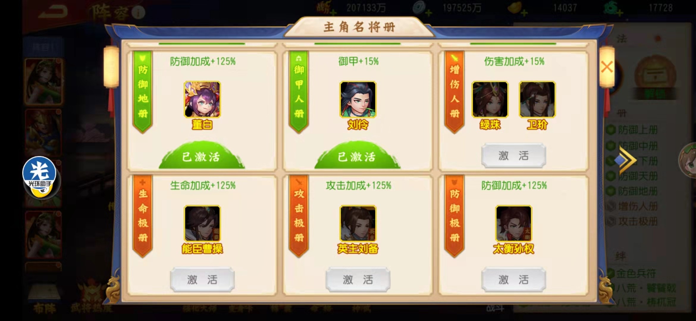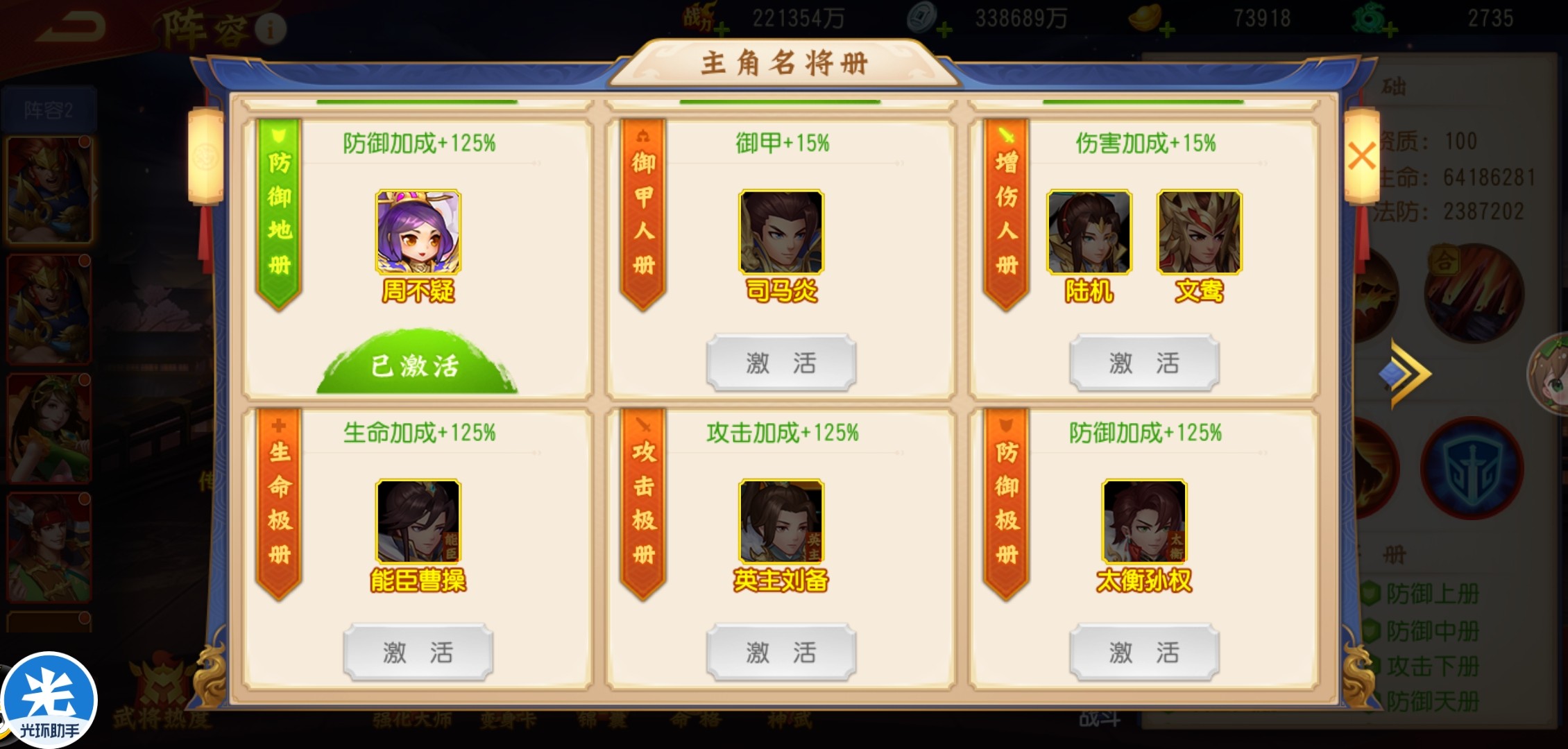 所以早期的时候,主角变身输出型武将的优势会高于上阵输出武将。不过这优势仅仅是在上阵武将未激活名将册之前的羁绊加成属性。