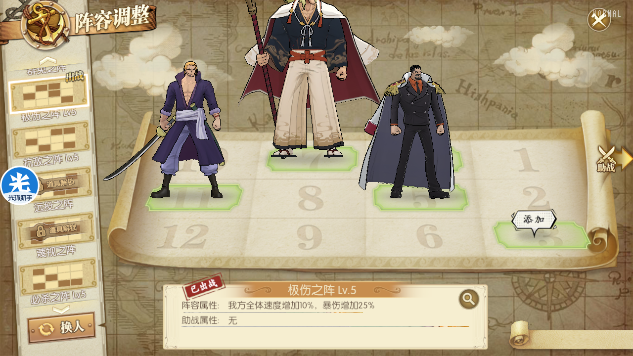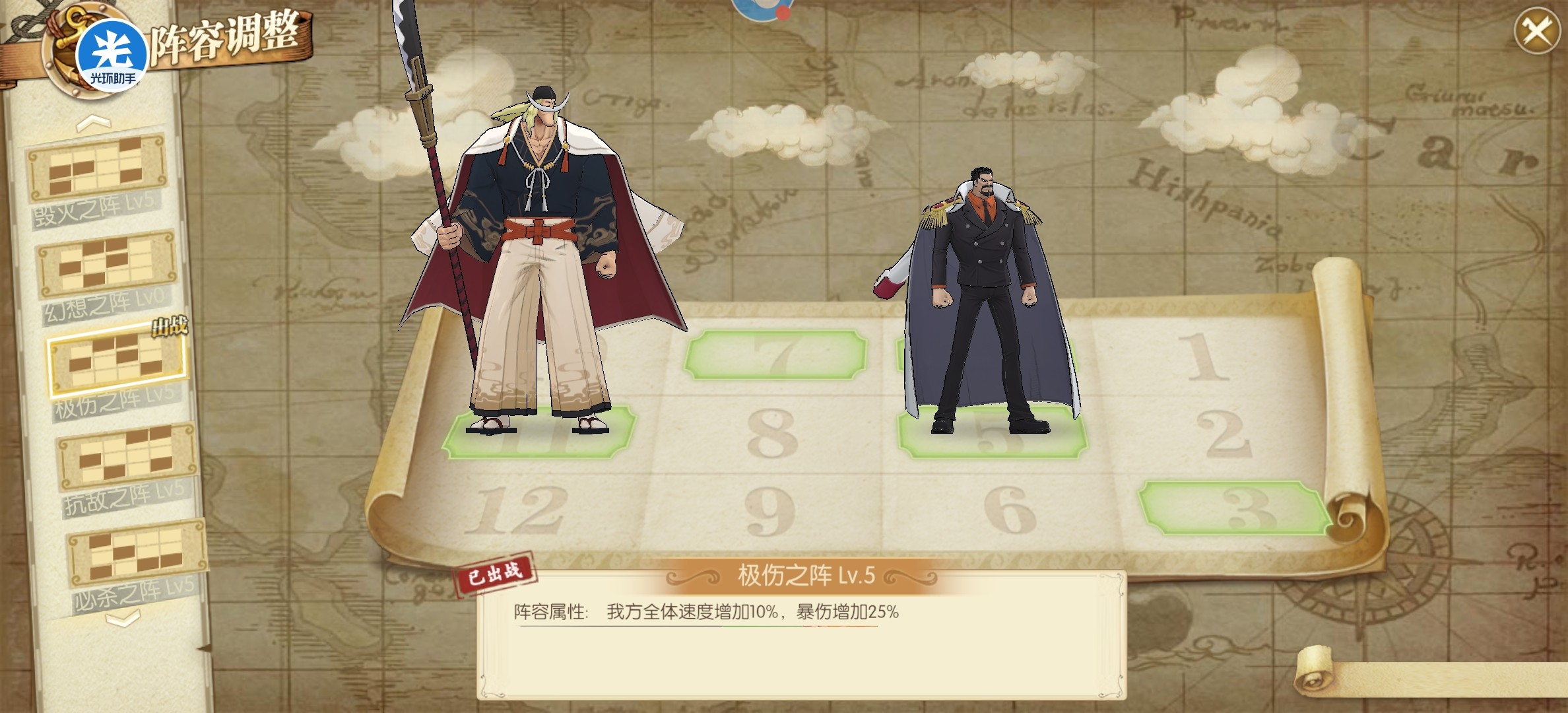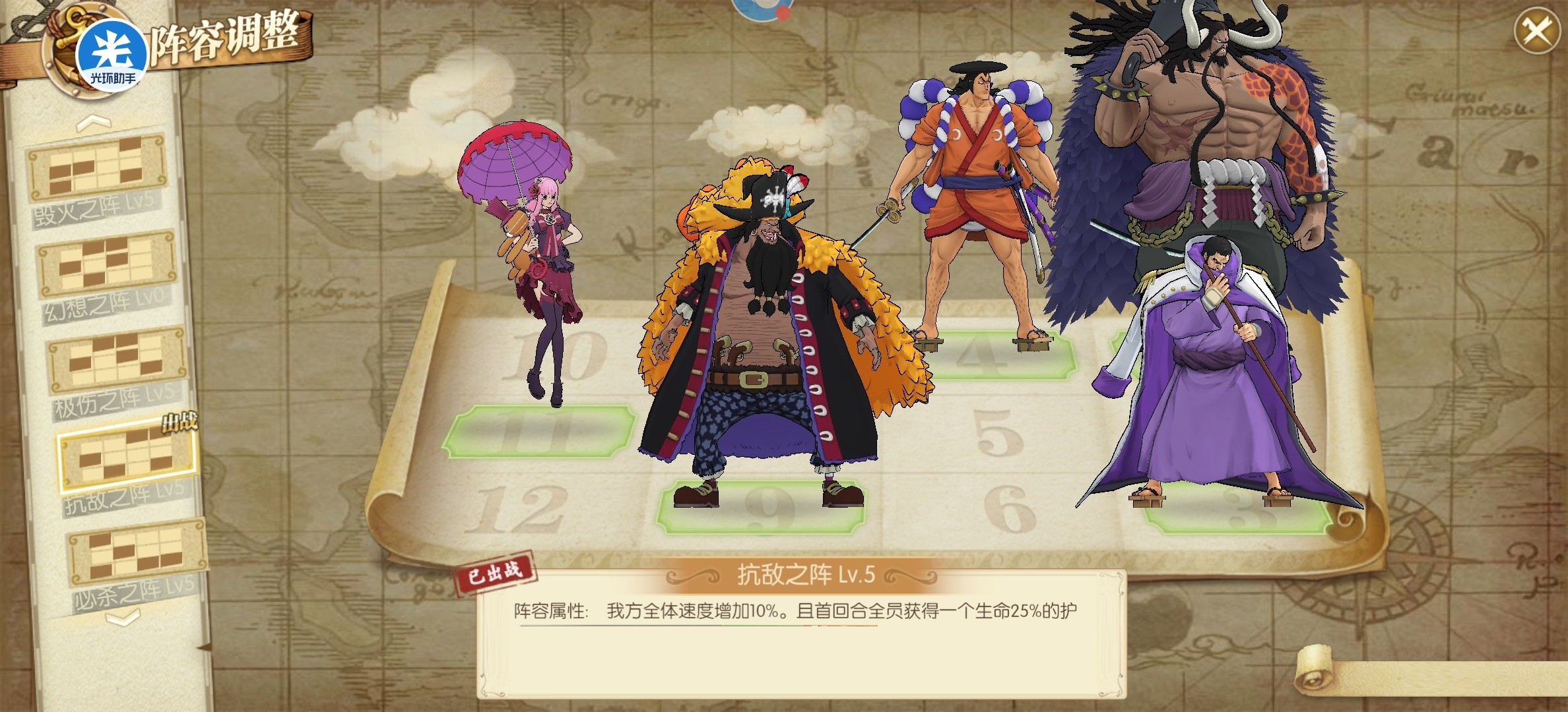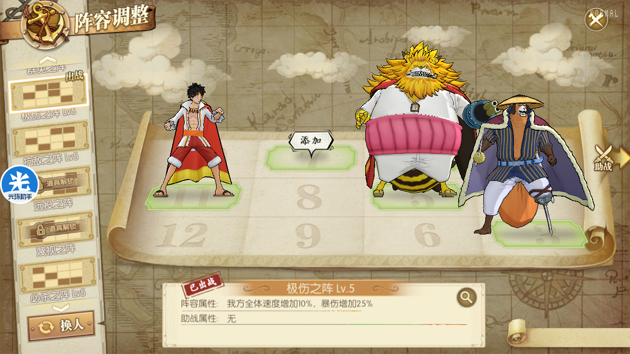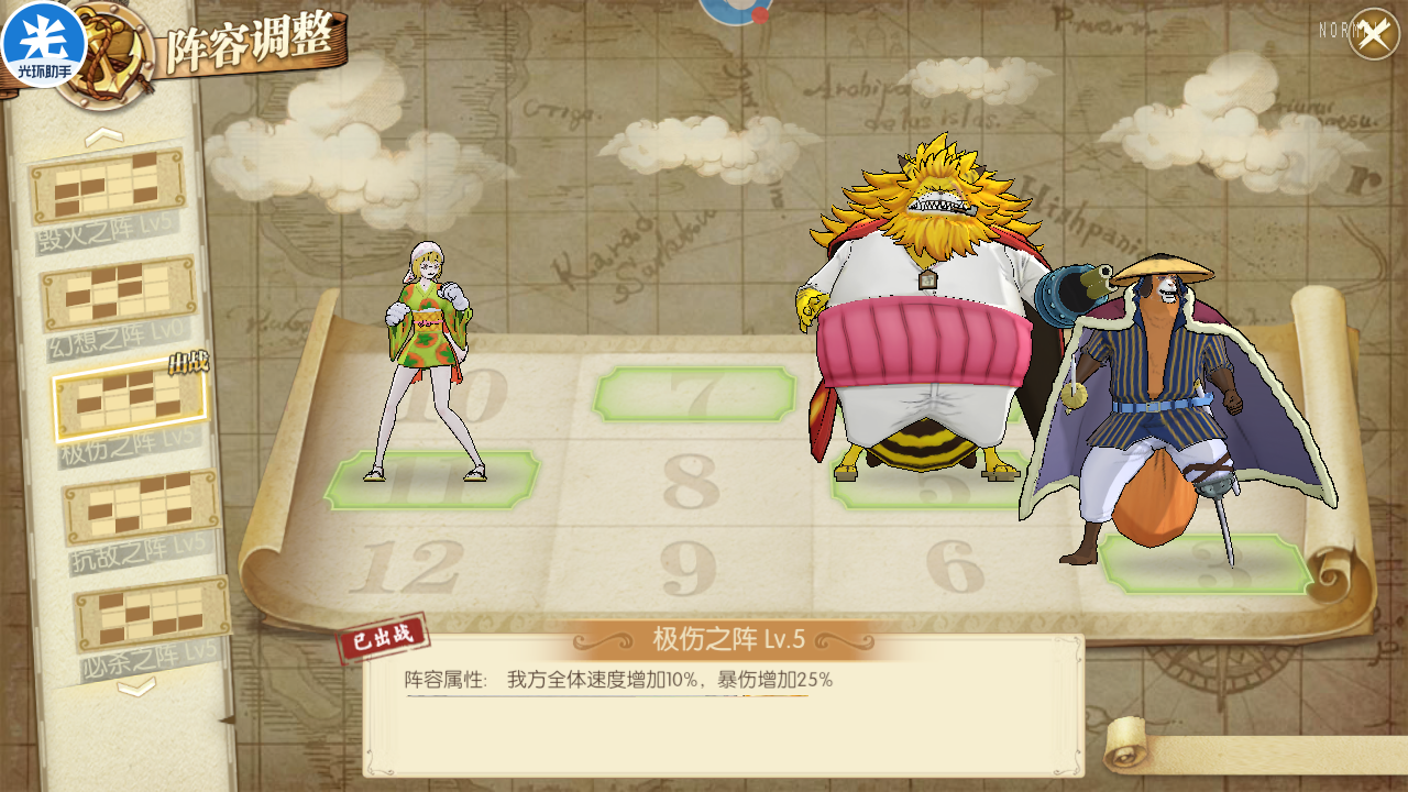 卡普白胡子雷利,这个阵容主要就是针对回血阵容,因为有的海米会猫狗小马哥跟你打个20回合之类的,所以雷利用起来也还好。当然配合比较好的还是卡普白胡子御田,这个阵容兼容性比较高,也可以应对很多阵容。