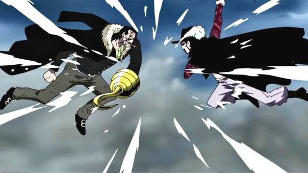 熊和明哥实力不分伯仲,差距不大,顶上战争中,曾经被路飞打败的鳄鱼表现毁了观众三观,从刚开始的偷袭白胡子未果,被钻石乔兹撞飞,大家还能接受,接下来就是硬杠明哥,挡下鹰眼斩击,腰斩赤犬……竟然都全身而退……