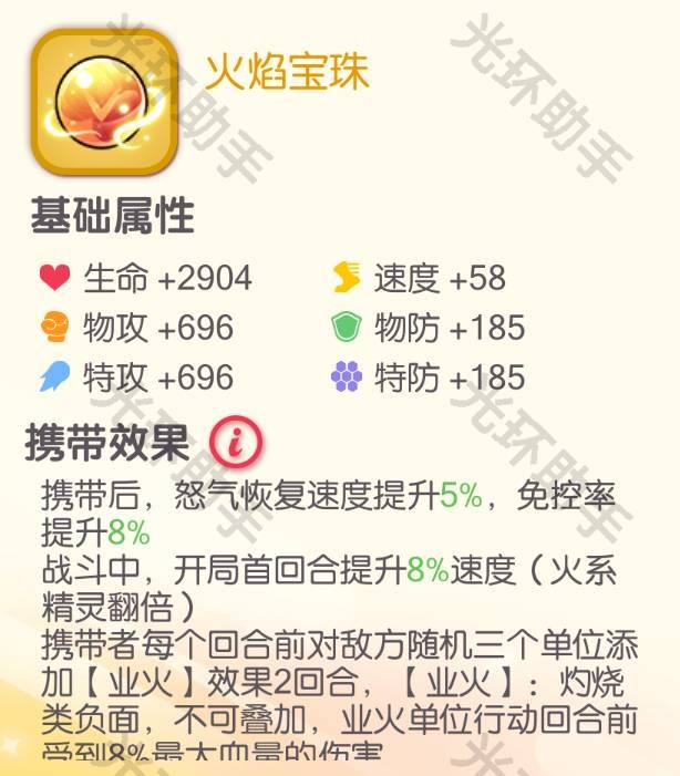 四星可用,八星可为火系精灵提供解控的效果但不建议升星携带道具推荐橙携专属宝珠或金剑