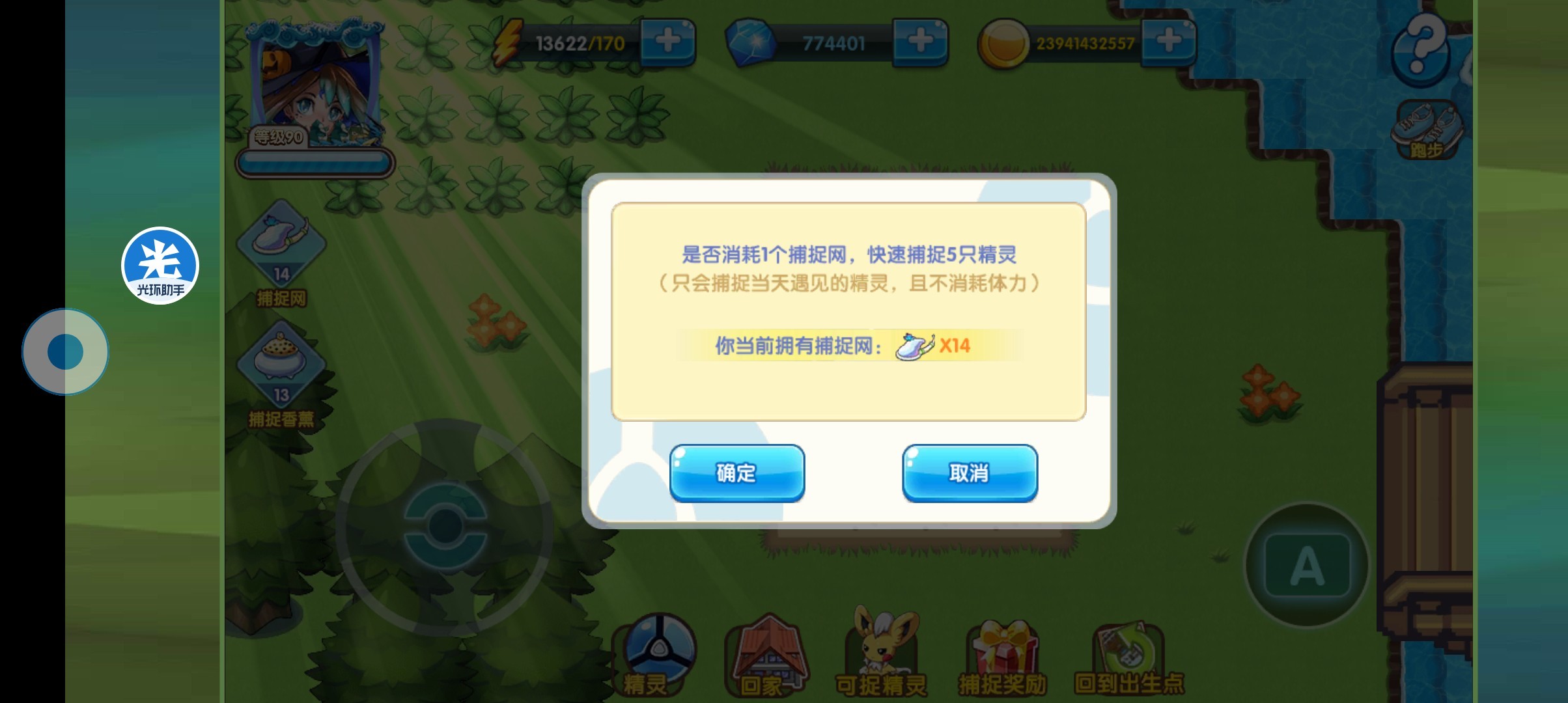 这就是捕虫网的效果,大家可以看到一口气就可以捕捉五只精灵,然后不需要浪费体力,就是给你五次机会,抓到什么是什么,而且不浪费体力