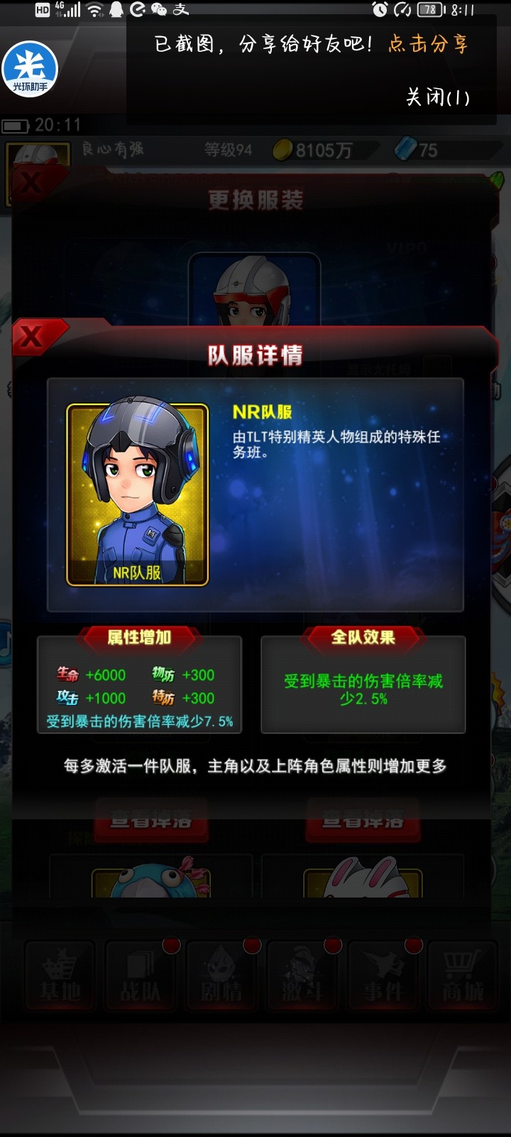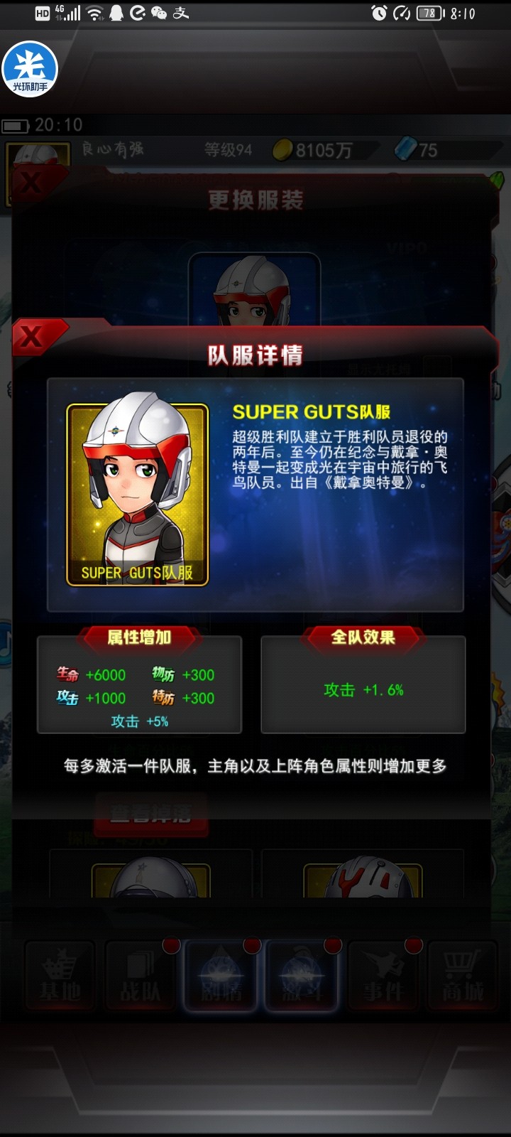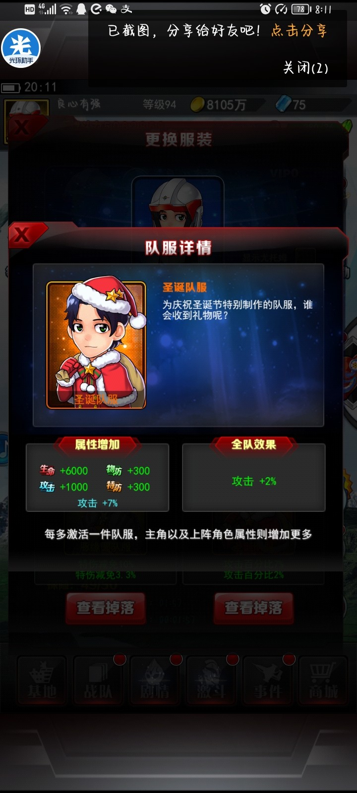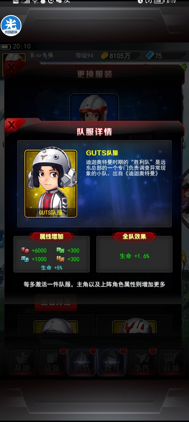 当前的队服大家都不可能不知道,每多一件这应有的效果就增加,就是那些。攻击呀,闪避呀,等防御力之类的效果,一般的人都不会管那些,所以凑齐全部队服是少之又少的,因为他们并没有发现其中的增幅效果,或者又是说征服幅度太少了,但是大佬们都非常重视这些,有些大佬并不是因为他们氪金,而是他们注意每一个细节,再加上他们充钱所获得的对付,所以增幅效果有很大的提高。