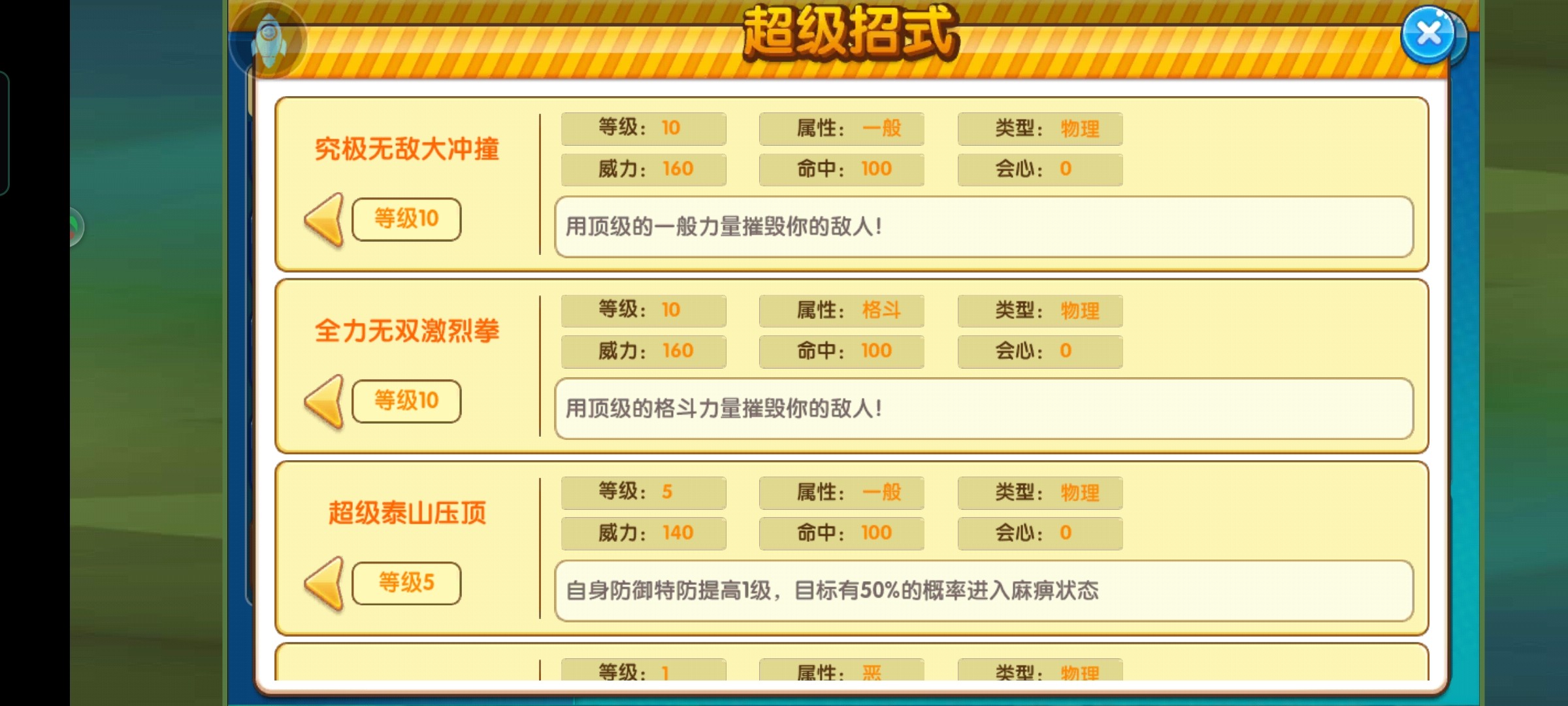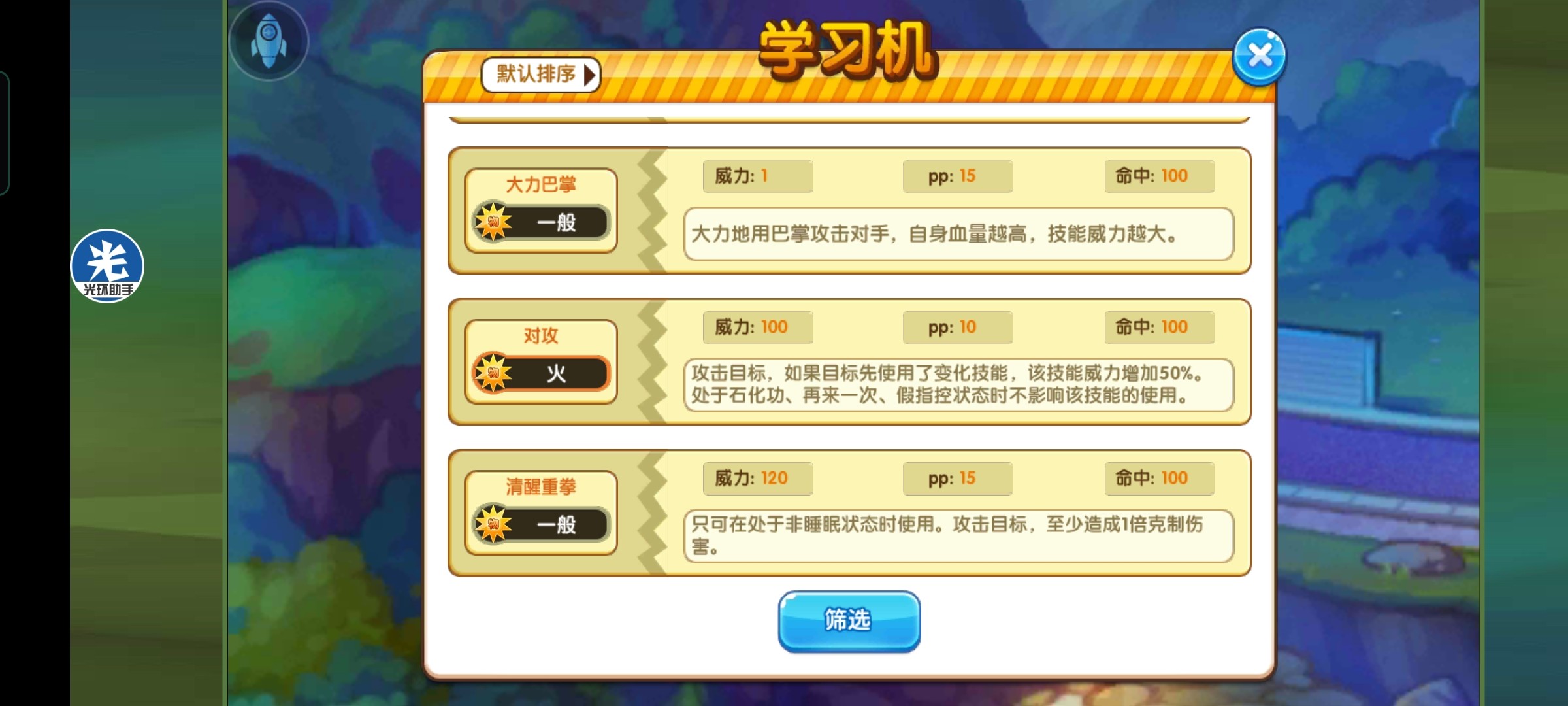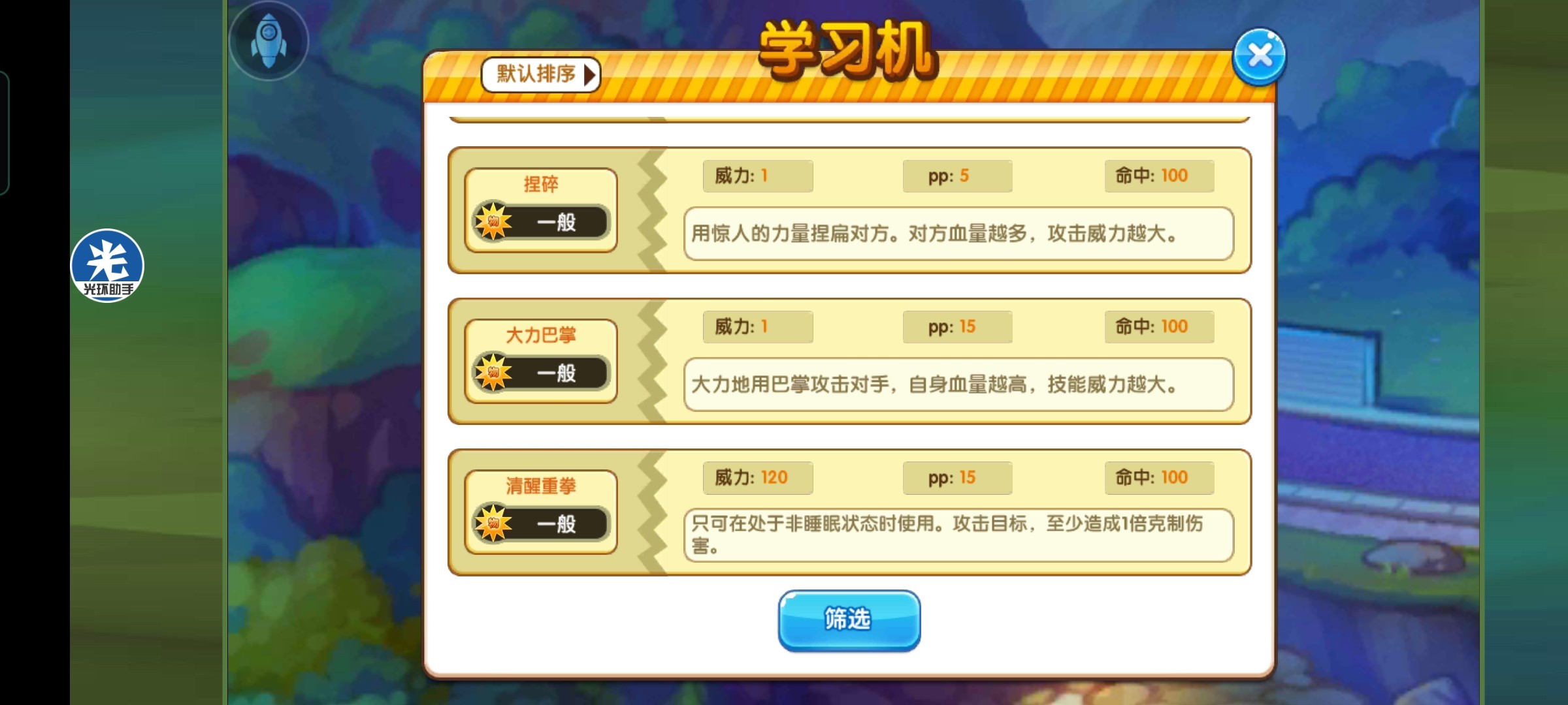 懒惰/潜心突破+大力巴掌/清醒重拳/梦话+集气/健美+扫除/盖亚/沙海/对攻