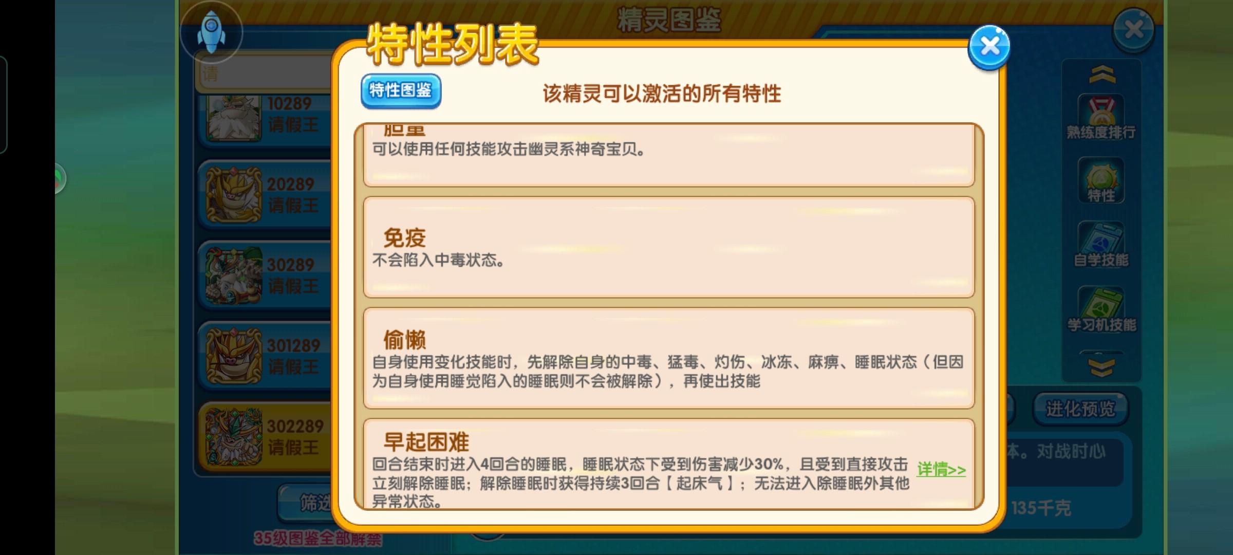 总结:请假王作为一只普通系的精灵,在肉度和输出上都不错,原版请假王拥有非传说宝可梦中最高的种族值。然而它的负面特性懒惰使得它无法在对战中发挥与种族值相应的实力。不过复刻原创的特性让其不再被特性所拖累,反而可以作为助力,好了,攻略就到这里。