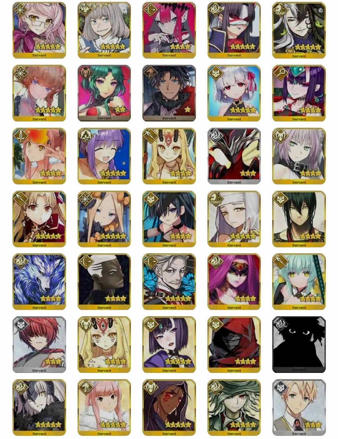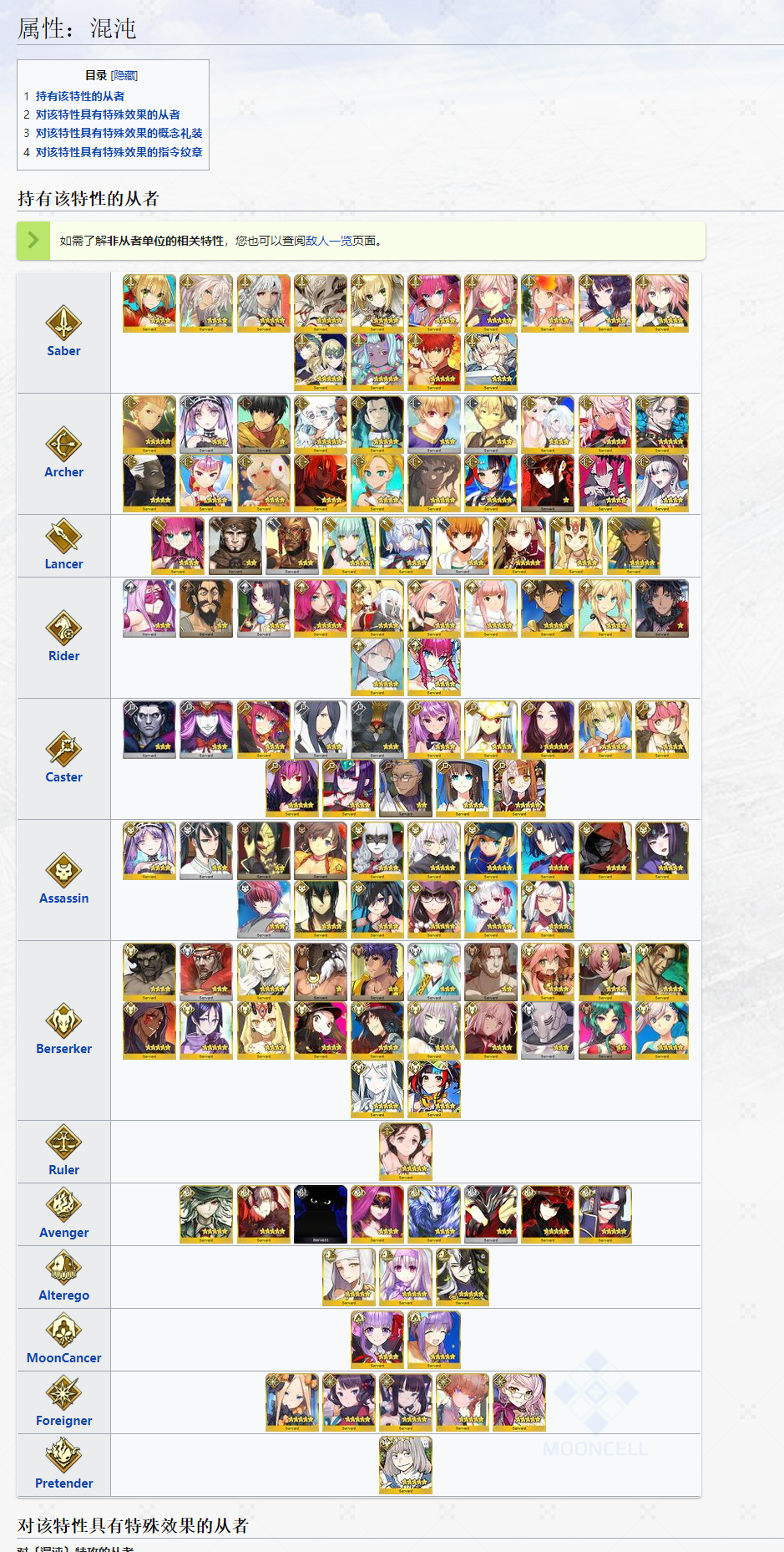「混沌」属性从者一览: