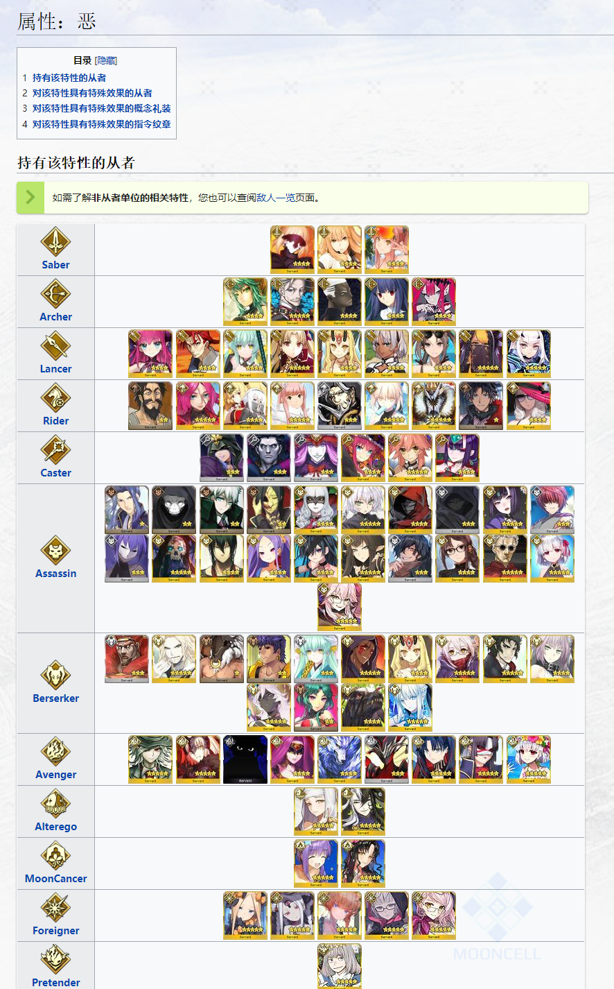 「恶」属性从者一览: