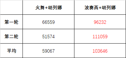 · 这里针对波赛西、火舞和胡列娜3名控制系魂师,维一选择了其中波赛西+胡列娜和火舞+胡列娜的两种组合进行了对比测试,每种组合至少进行2场战斗取最后的伤害平均值作为最后的结果,这样也能一定程度上降低单次突发因素所造成的伤害浮动影响