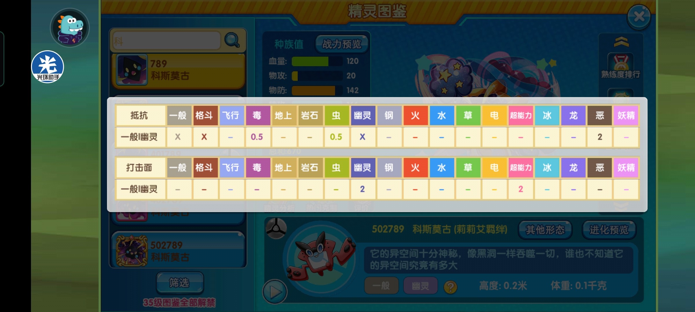 小星云的属性十分优秀,一般幽灵能够免疫一般、格斗以及幽灵系,抵抗虫和毒系,只有一个恶系的弱点。在种族值方面,120点的血量和142点的物防非常突出,114点的特防略有不足,但配上冥想,能够弥补特防上的缺陷。