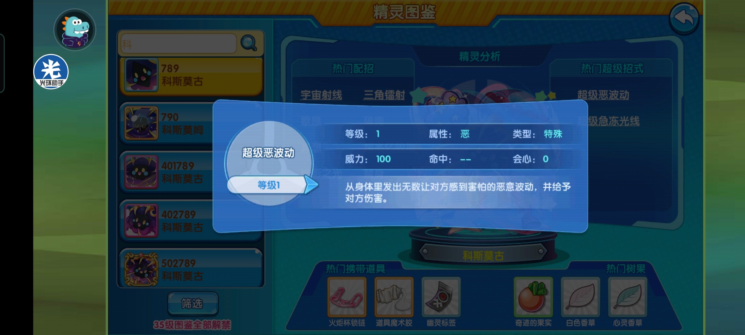 超级招式选择超级恶波动,补充打击面。
