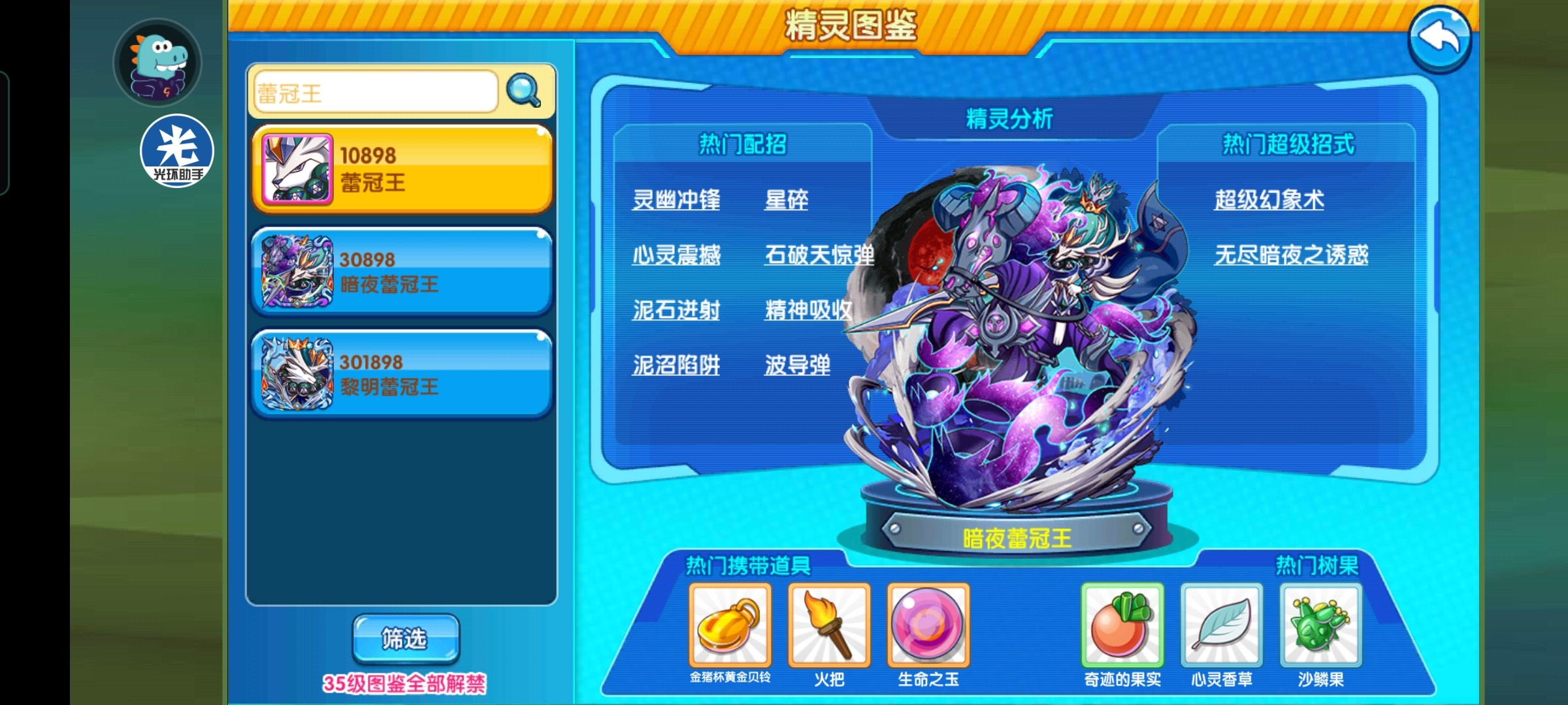 暗夜/黎明蕾冠王 暗夜和黎明蕾冠王作为两条命的宠物,在pvp战场中叱咤风云。很多高攻宠在面对对方时,只能逃之夭夭。小星云在面对它们时能够从容击败或者打残对方。