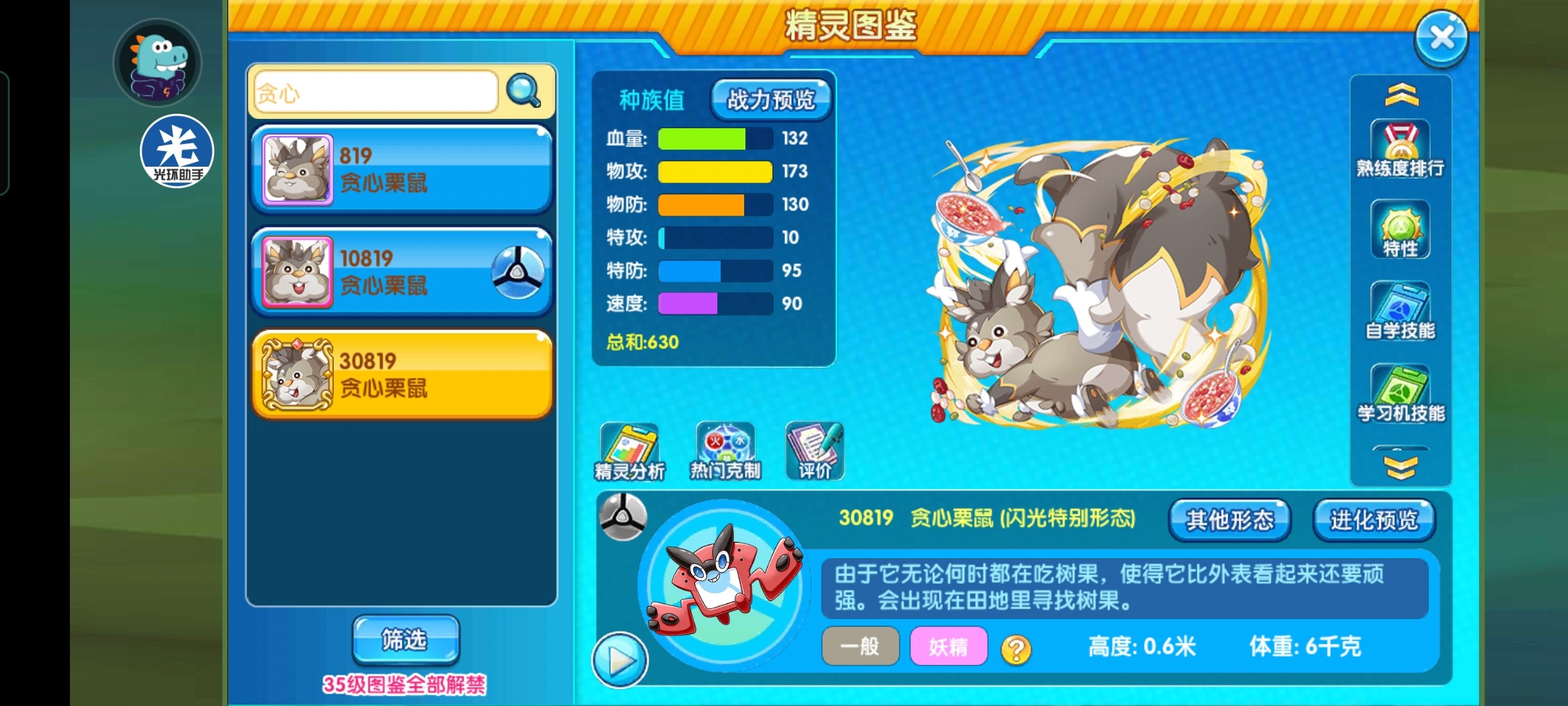 贪吃:会贪吃特性的宠物不少,但是需要进行血线调控或者需要配合啃食技能等,贪心栗鼠的打击面并不是很好,而且吃掉树果后会非常怕状态,这里不是很推荐。
