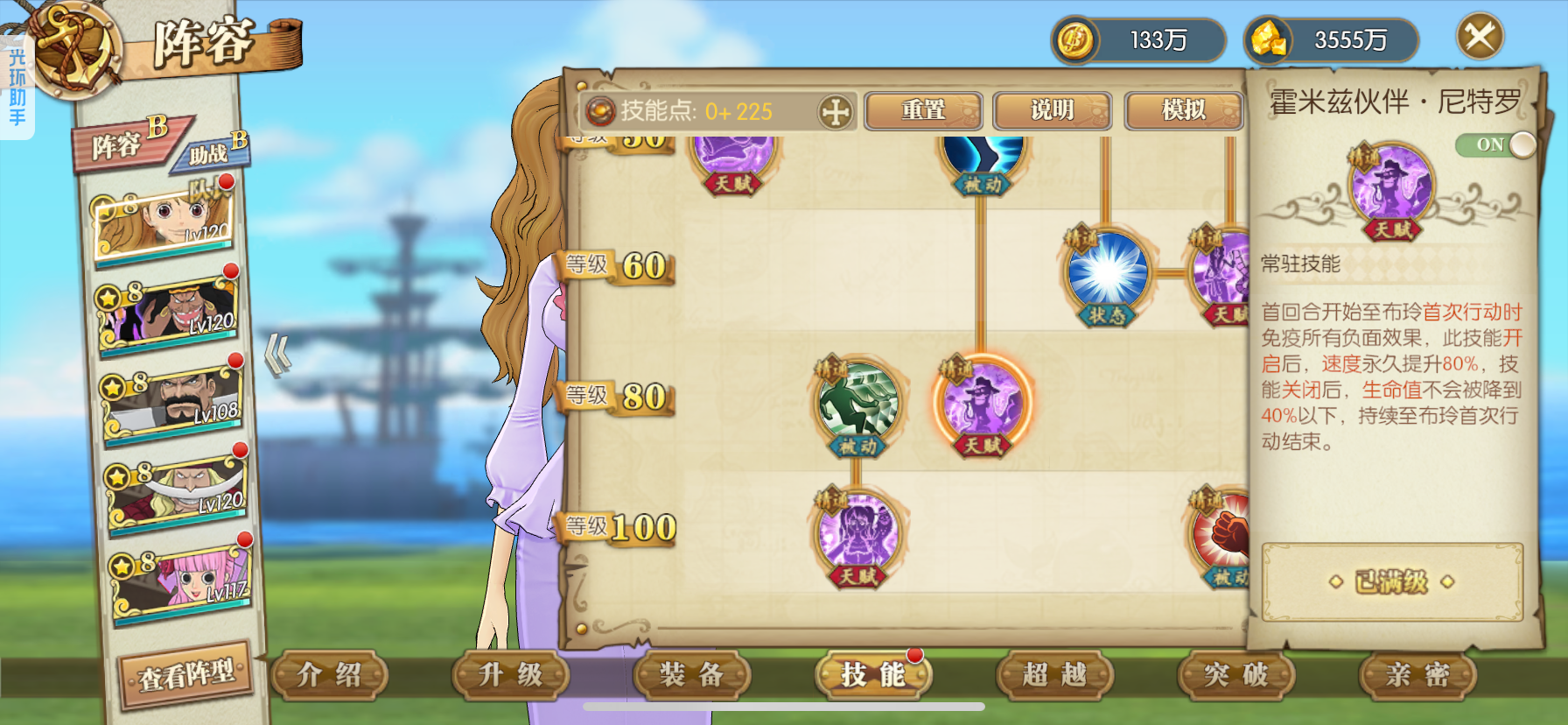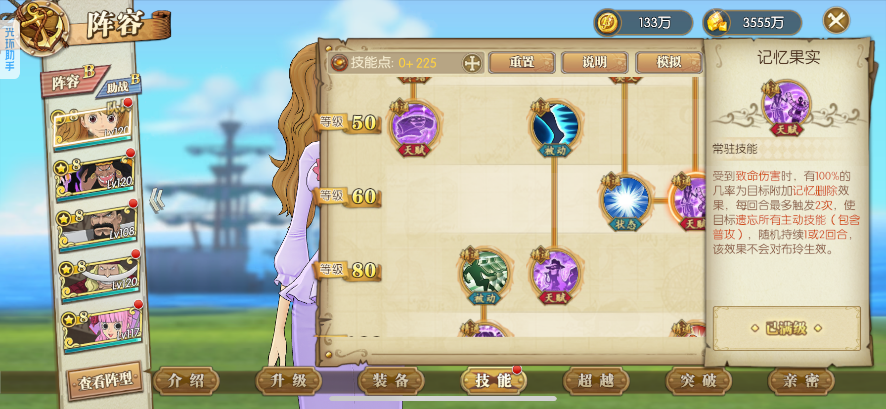 因为布琳的80级天赋提高140%速度,让布琳在天梯上的效果以快出手打控制为主,主动技能的记忆之线能有几率控制敌方1-2个技能的效果。提高了团队生存的效果,不过布琳是打全体技能为主,容易面对狗子护盾中断的效果,但布琳出手后能有欺诈的效果,能大大保证布琳不会轻易被对位单点人物打出退场,路飞也不能轻易移除到布琳。