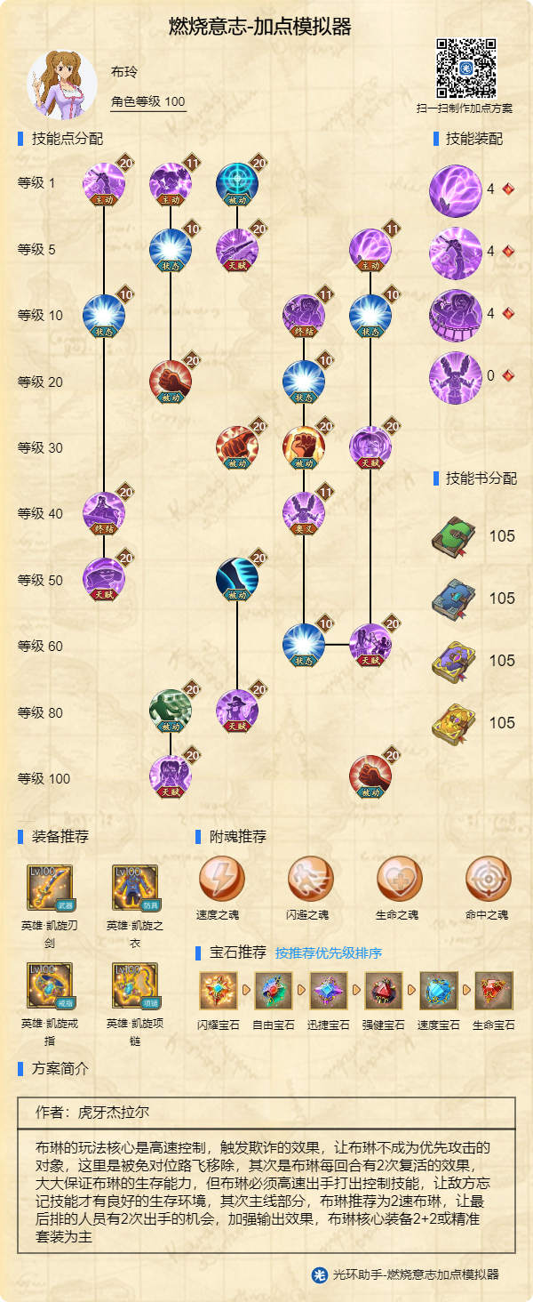布琳的技能核心是让敌方角色有几率忘记主动技能与平A,打敌方打不出技能伤害,破坏敌方核心人物的输出节奏,不过这些条件依靠高速出手与奥义被动延迟一回合,如果不布琳被打出复活,还可以进行记忆删除,进行罚站一到两回合的效果,所以布琳的天梯辅助效果很强,前提是必须高速一速为条件。