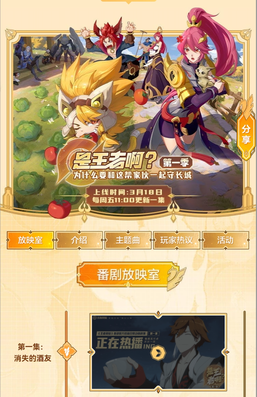 王者荣耀 《是王者啊?》第一集上线
