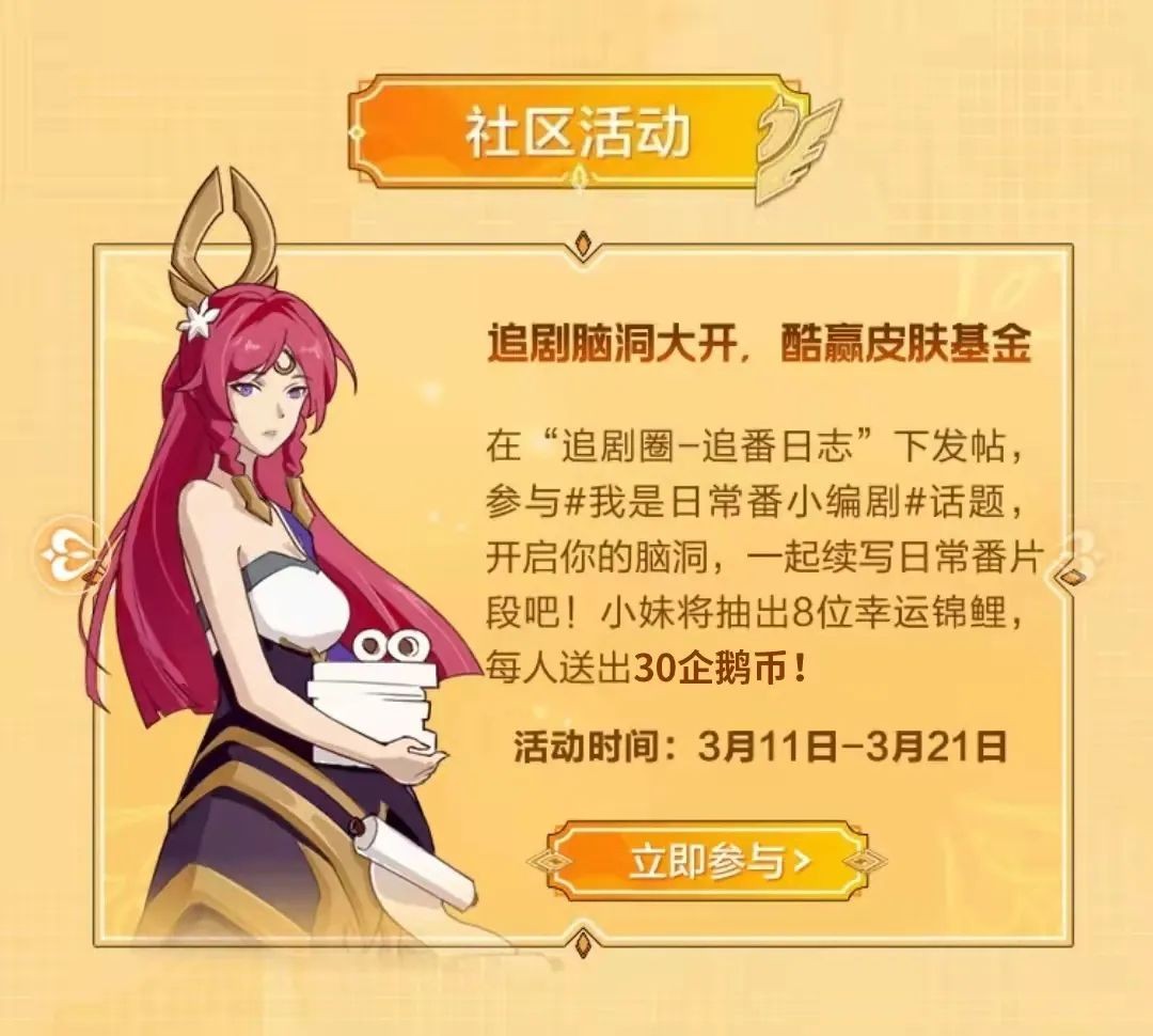 在这里,我们可以到追剧圈,发帖续写《是王者啊?》片段,脑洞大开,酷赢皮肤购买金,人人都是小编剧~